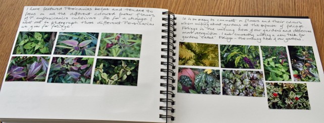 Over the page I painted two Cyclamen growing in our Arabella Garden, which were planted as a clump of five small plants and have now become a lovely ground-hugging patch in shades of pink with a few whites. The foliage is as interesting as the flowers.