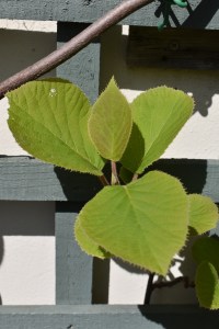 On my first page I featured the Kiwi Vine, the climbing plant which opens with beautiful moss green leaf buds which turn a purer green as the days progress. I wrote, “April sprung onto the scene with frost-free nights and days littered with ‘April Showers’, sunshine and sparkling light rain. Leaves change on shrubs, trees and climbers are opening rapidly, changing colour, shape and texture. Our Kiwi Vine has beautiful foliage and we enjoy observing how each bud opens day by day.”