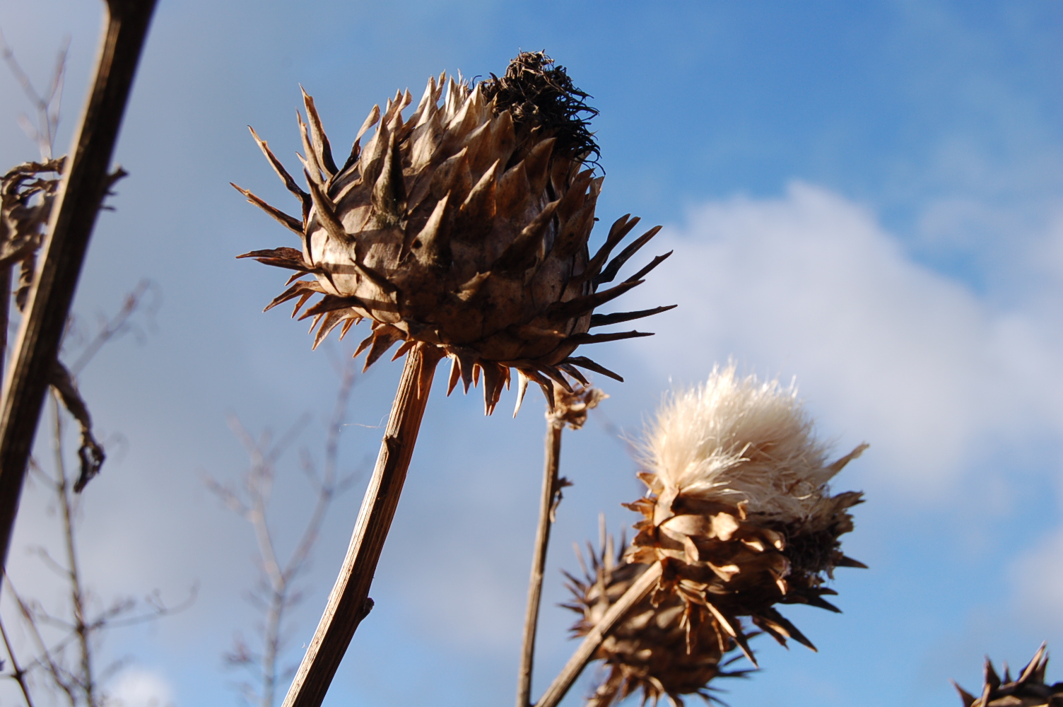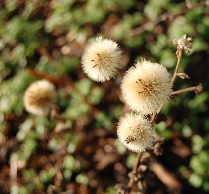 In the Autumn Garden seed heads of Asters remain long after the flowers of autumn, like tiny dandelion “clocks”.
