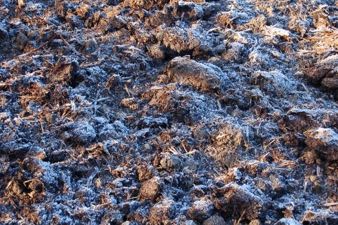 Frost sits on the bare ground and helps the gardeners by breaking it down and improving the texture in readiness for a final preparatory rake over. The fine tilth can then be home to seeds.
