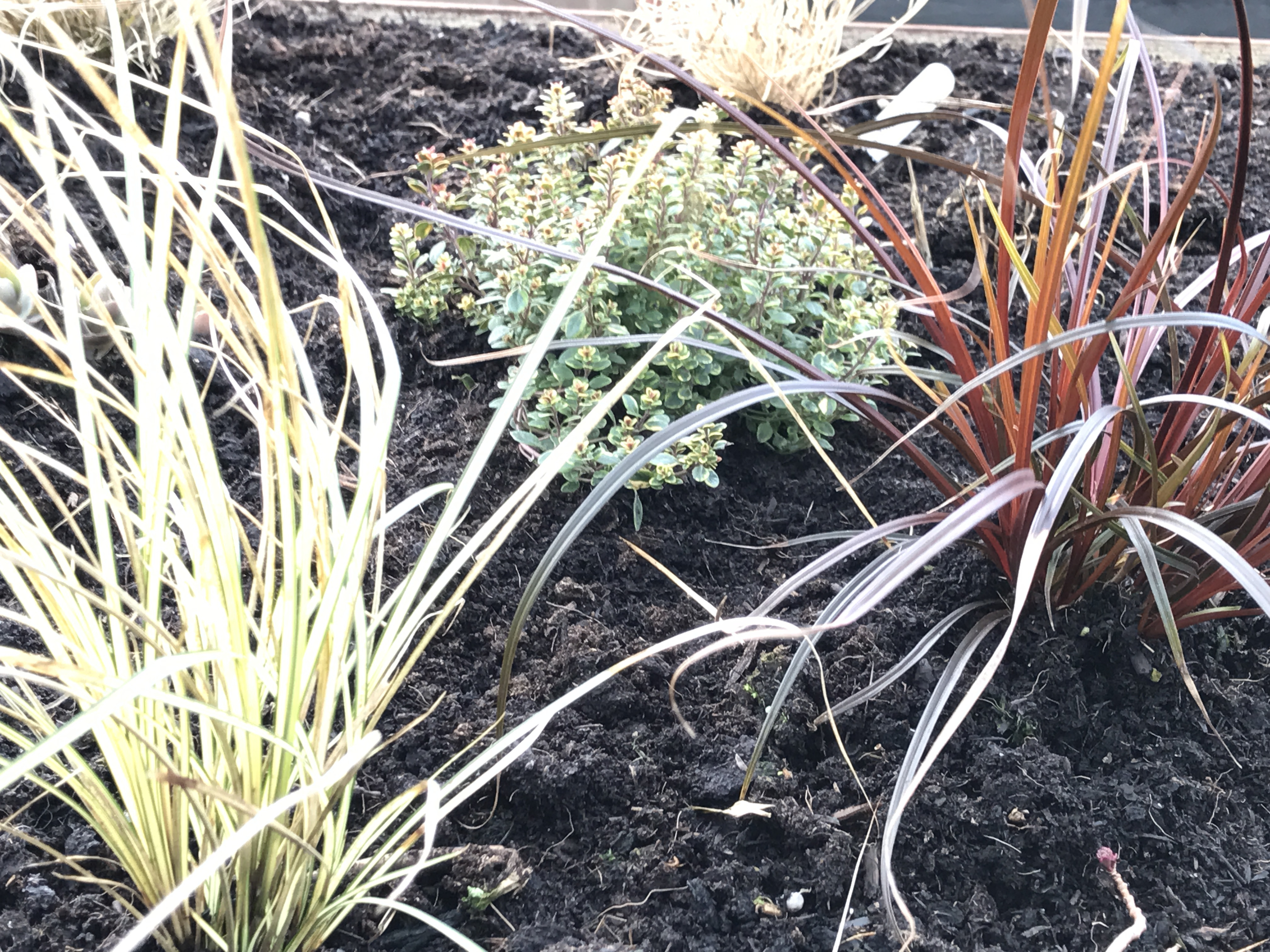Once in amongst the prairie planting we immediately noticed that seed heads in every hue of brown and beige and bright patches of late colour had joined the lemons, mustards and golds of the grasses. Pale purples glowed in the dull light of autumn. This glow is their secret weapon to attract moths and other night flying pollinators.