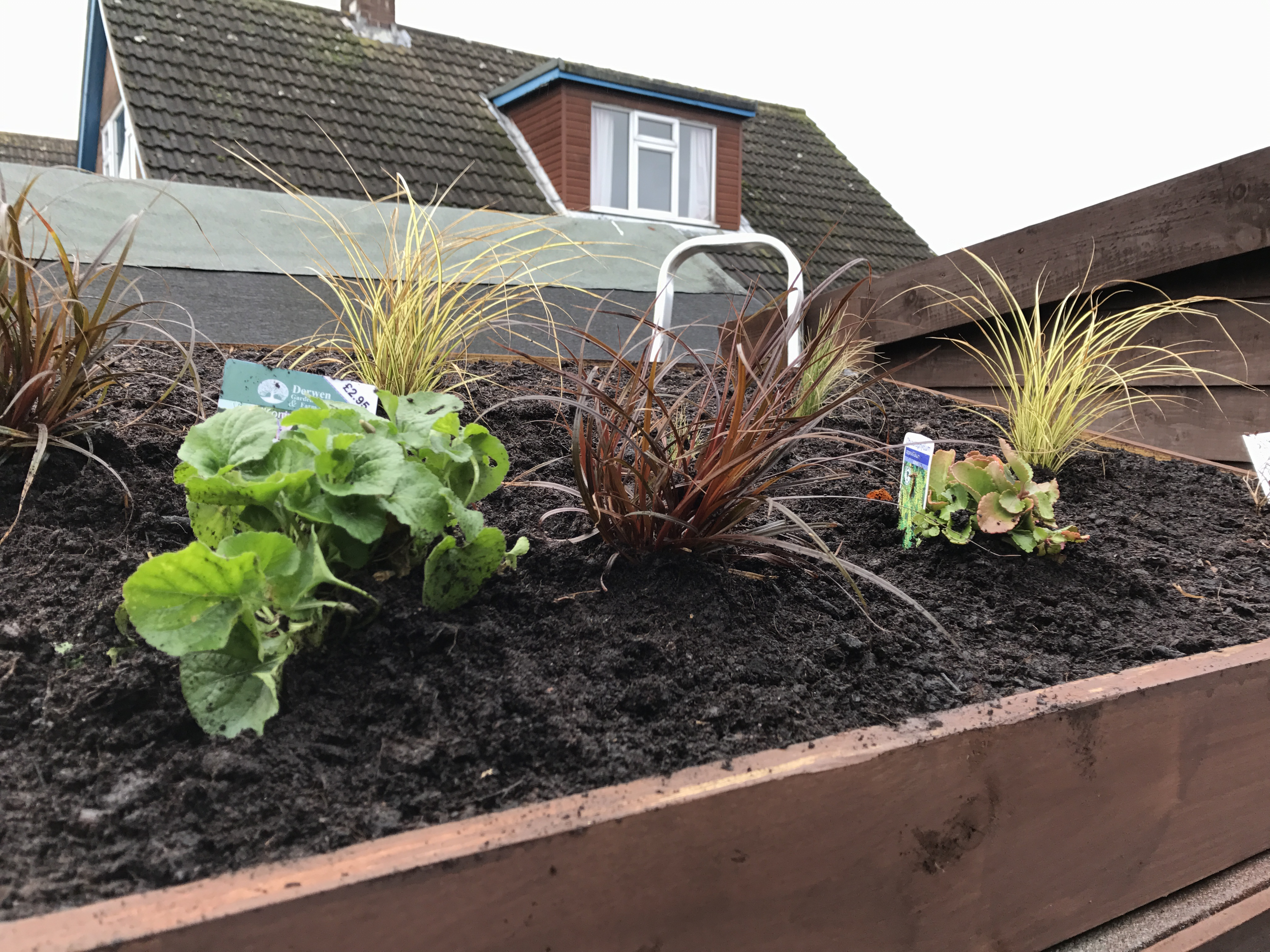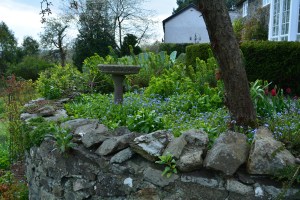 The summer bedding in the parterre has been consigned to the compost heaps and winter/spring plants has taken their place, primulas and a deep red Bellis perennis.