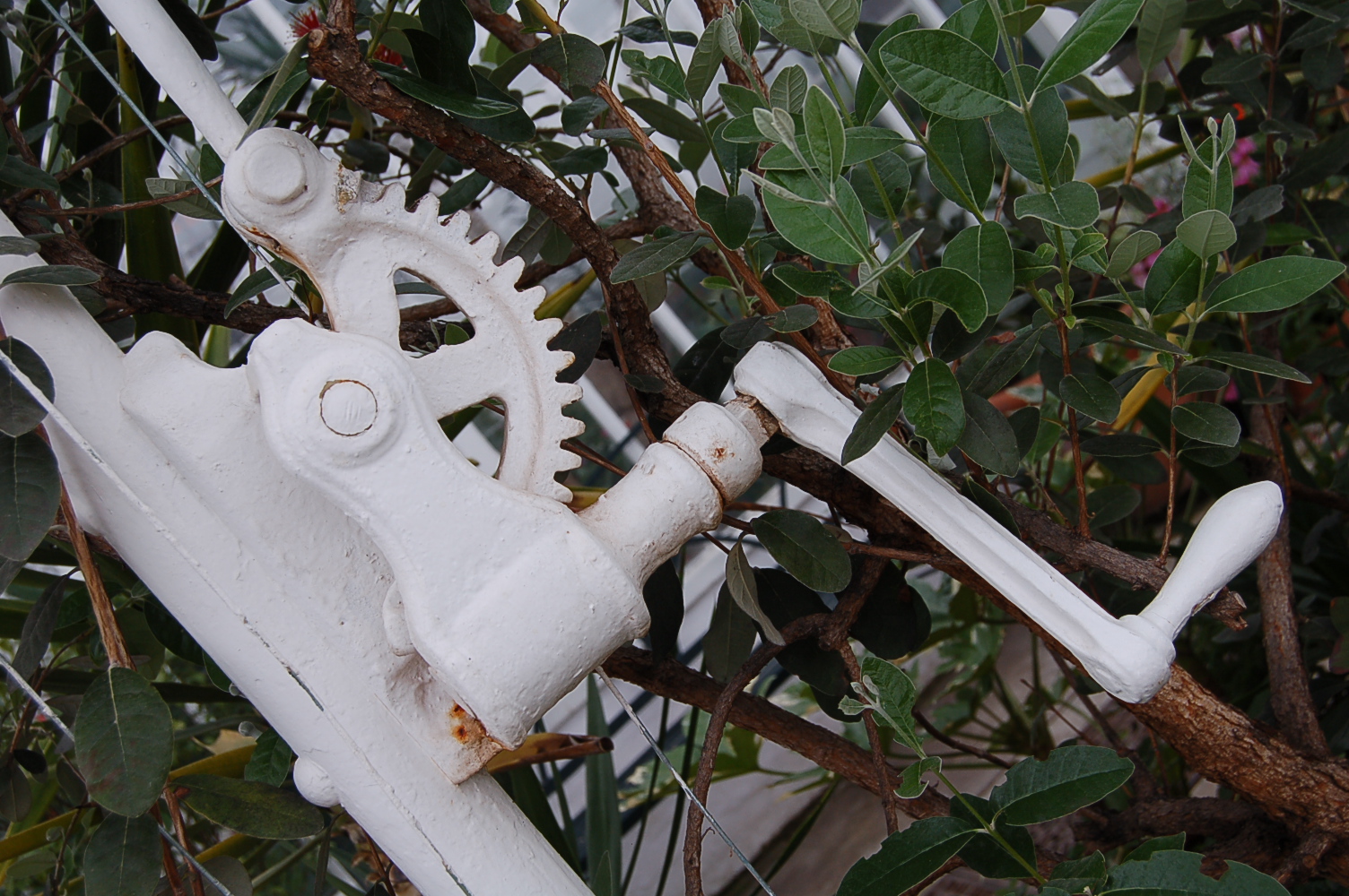 As we wandered around we noticed amongst the productive rows of veggies, this beautiful Victorian glass and metal cloche still in regular use.  It performed as well now as it always has done just like the walled garden itself.