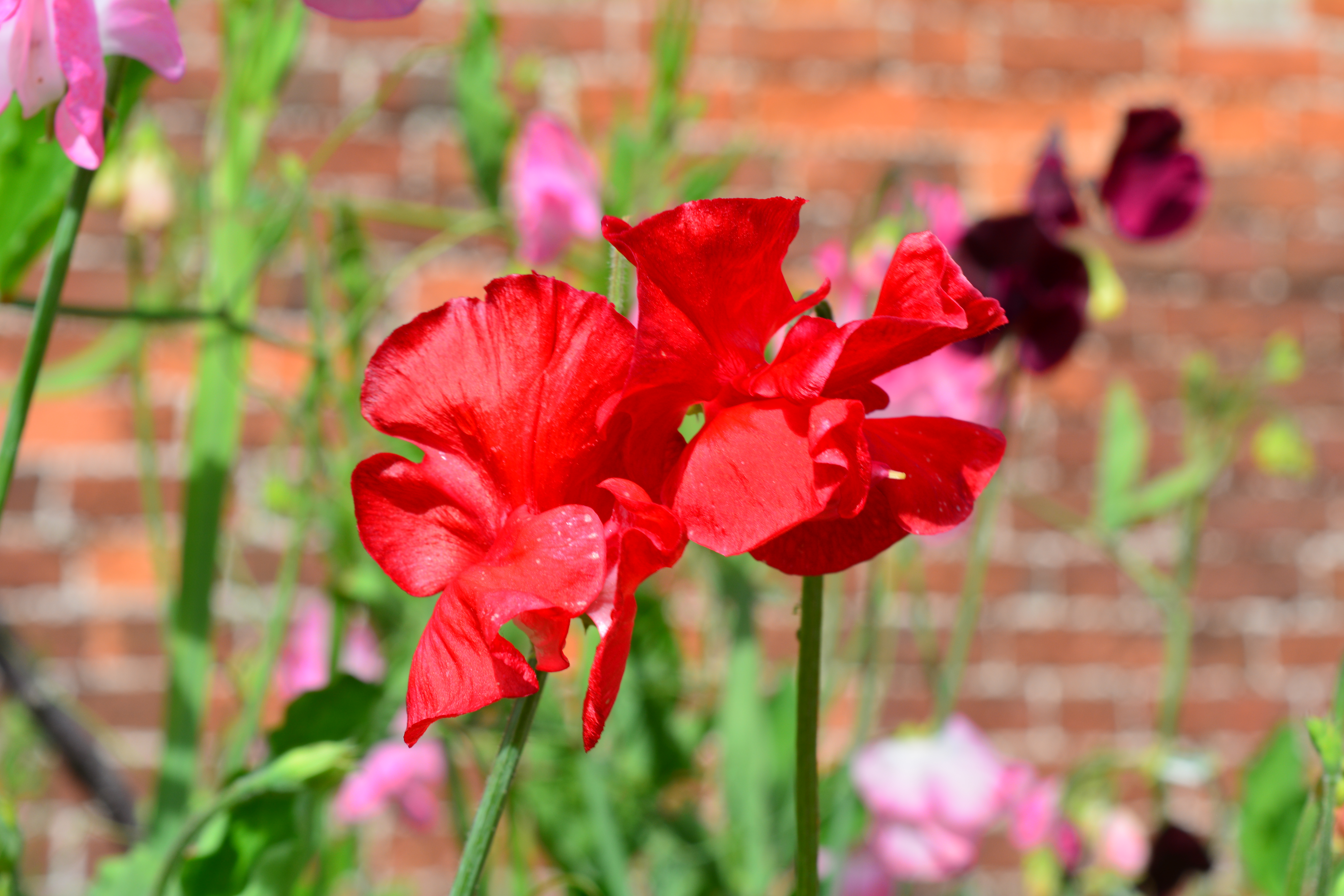 Plants can find their own niche however inappropriate it may seem to us. This bright red poppy chose a spot close to equally blue fencing.