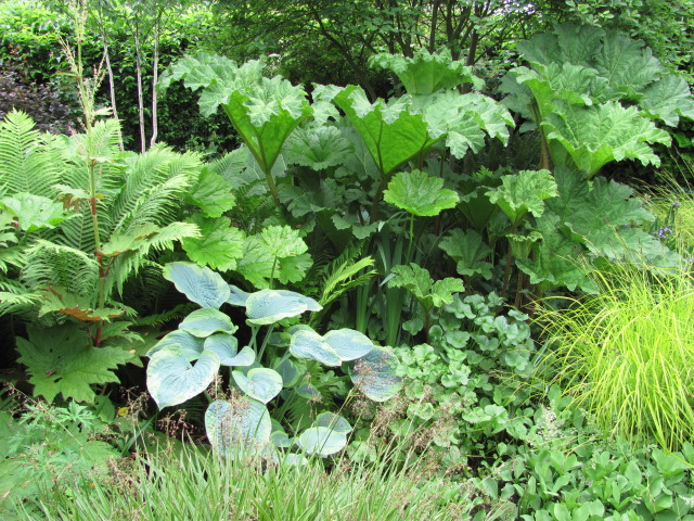 “Hostas are one of the more subtle of our garden favourites both their foliage and later in the year their flowers. The Bog Garden next to our Wildlife Pond and snuggled up to it is a place of rapid growth in May.”