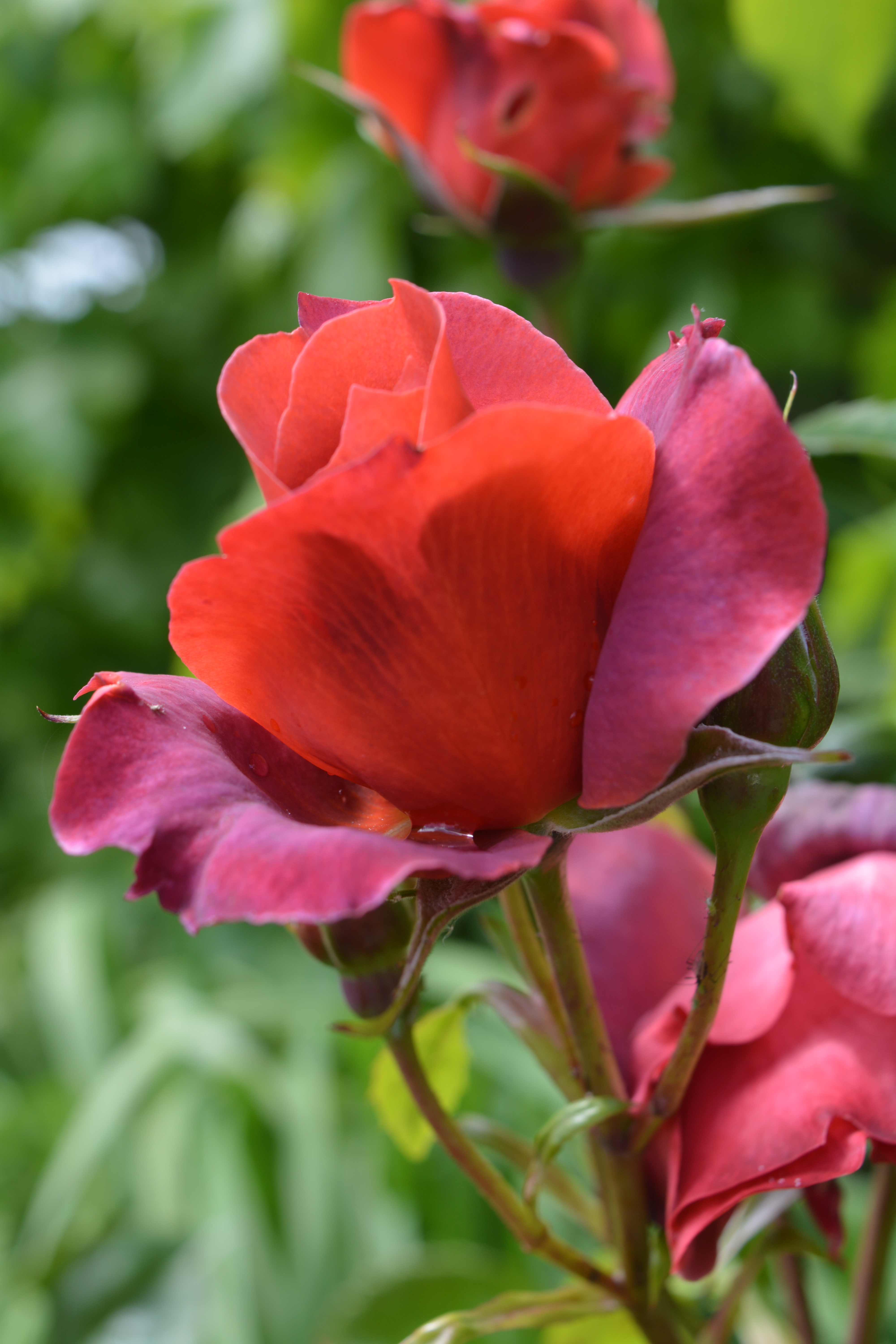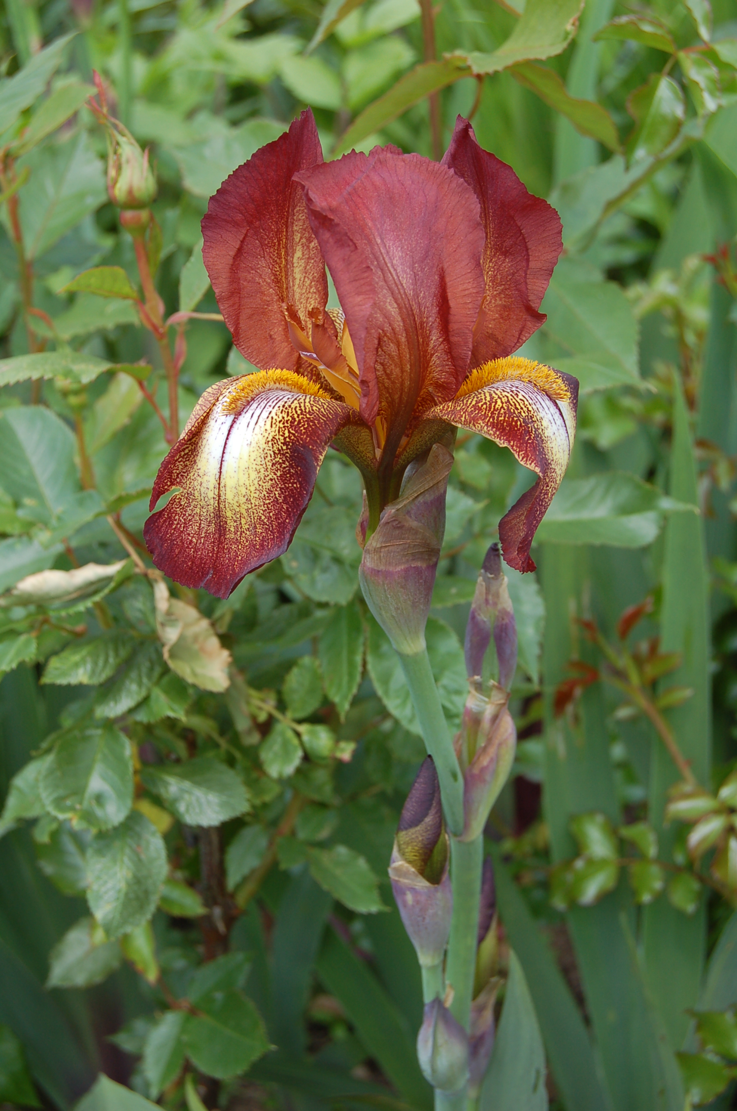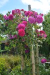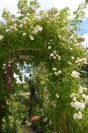 “Rosa “Warm Welcome” is a small climber and a cheerful charmer. Roses continue to flower profusely throughout the June garden.”