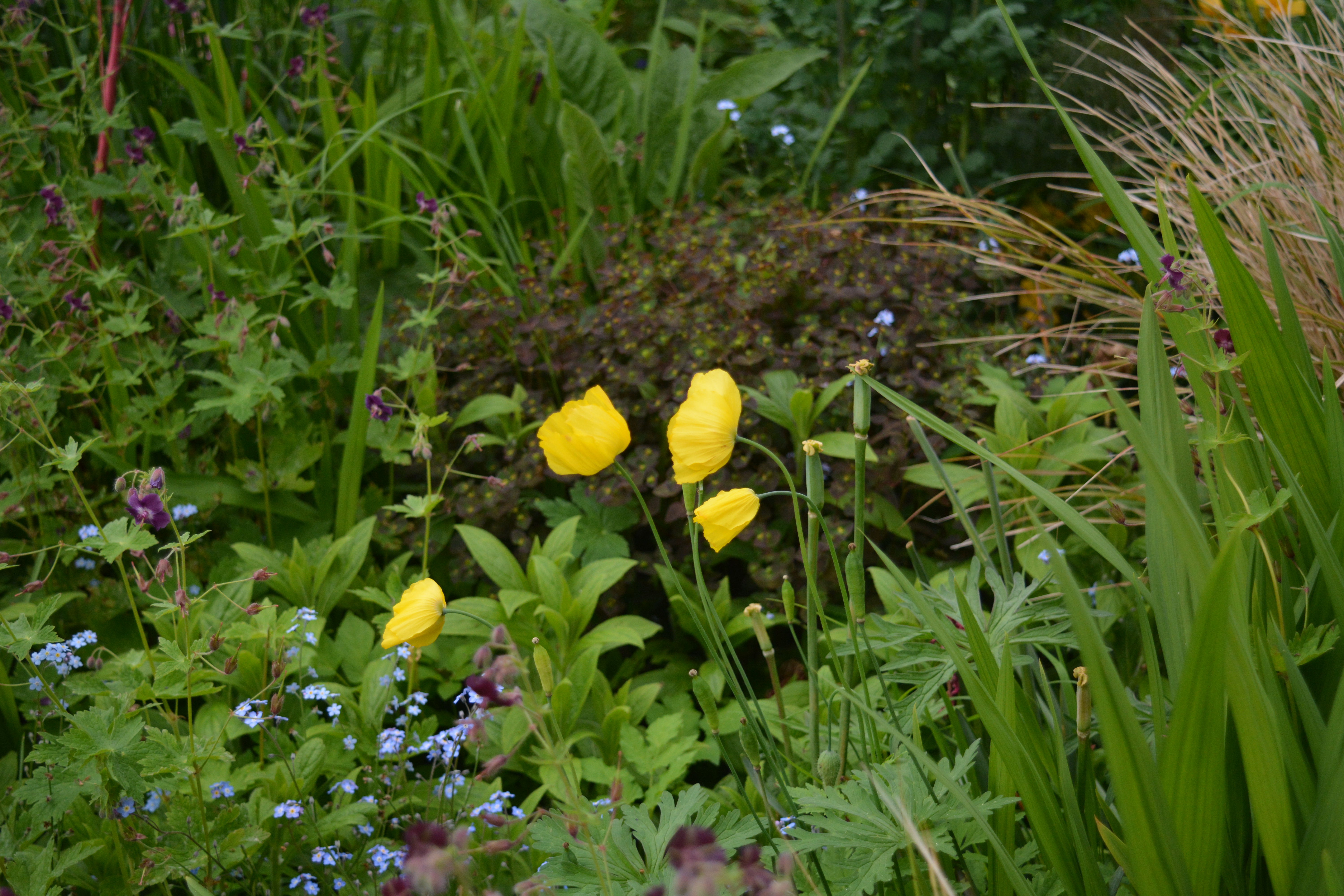 “Plant of the month for June is the Geum, the cultivars with hot colours – yellows, oranges and reds, – Totally Tangerine, Koi, Mrs Bradshaw, Lady Stratheden ………………..”