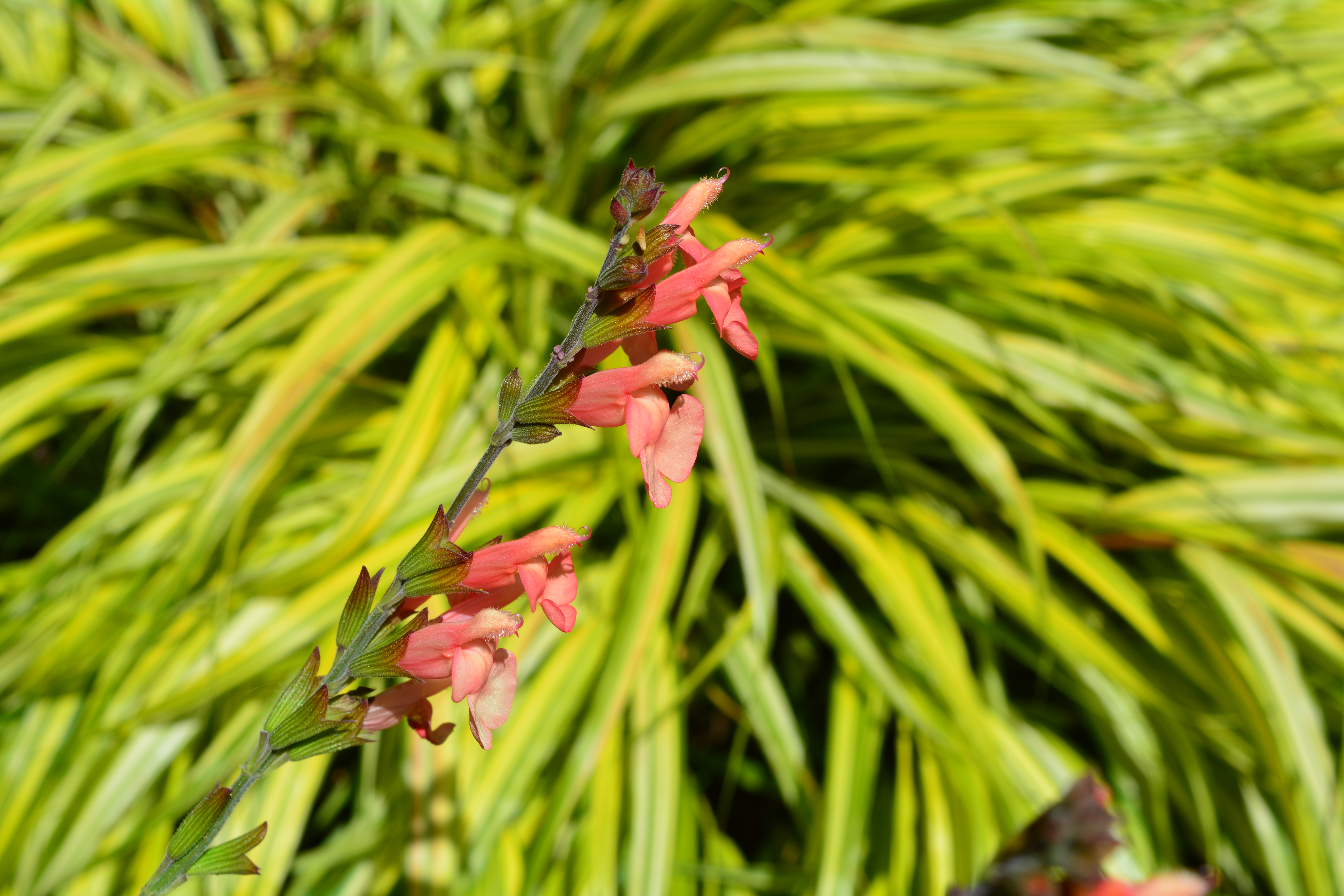 The final double page spread brings colour back as we look at what is in flower during the last few days of the month. I wrote, “In contrast to the subtle colours of dried grasses and seed heads our late flowering climbers, shrubs and perennials are so bright!”