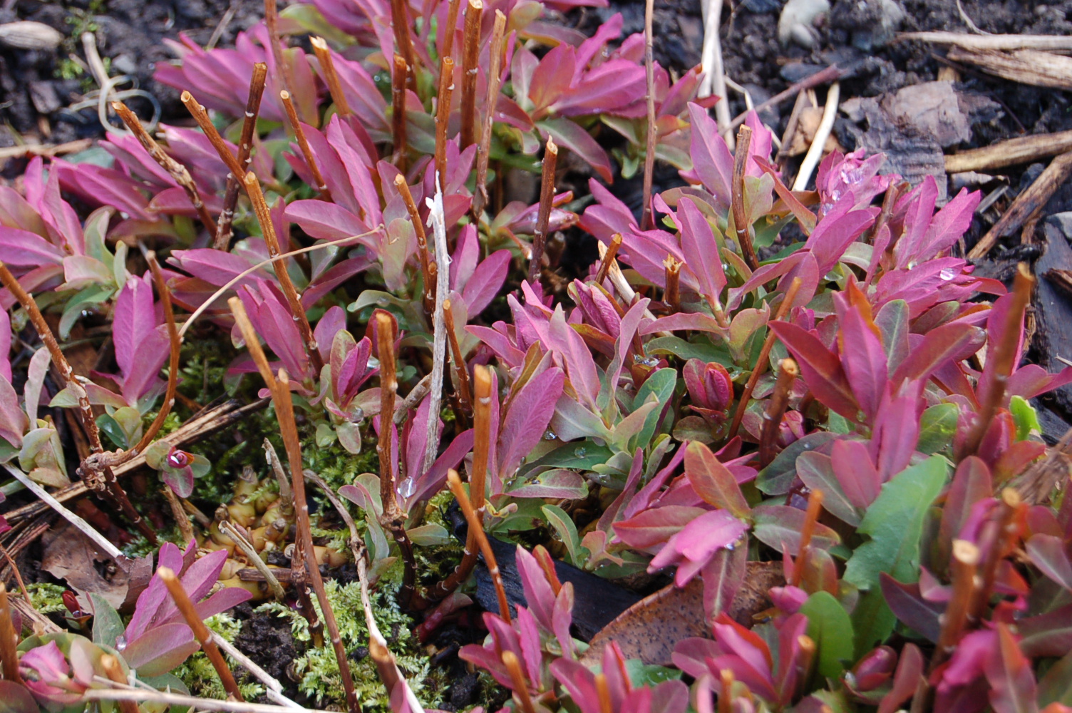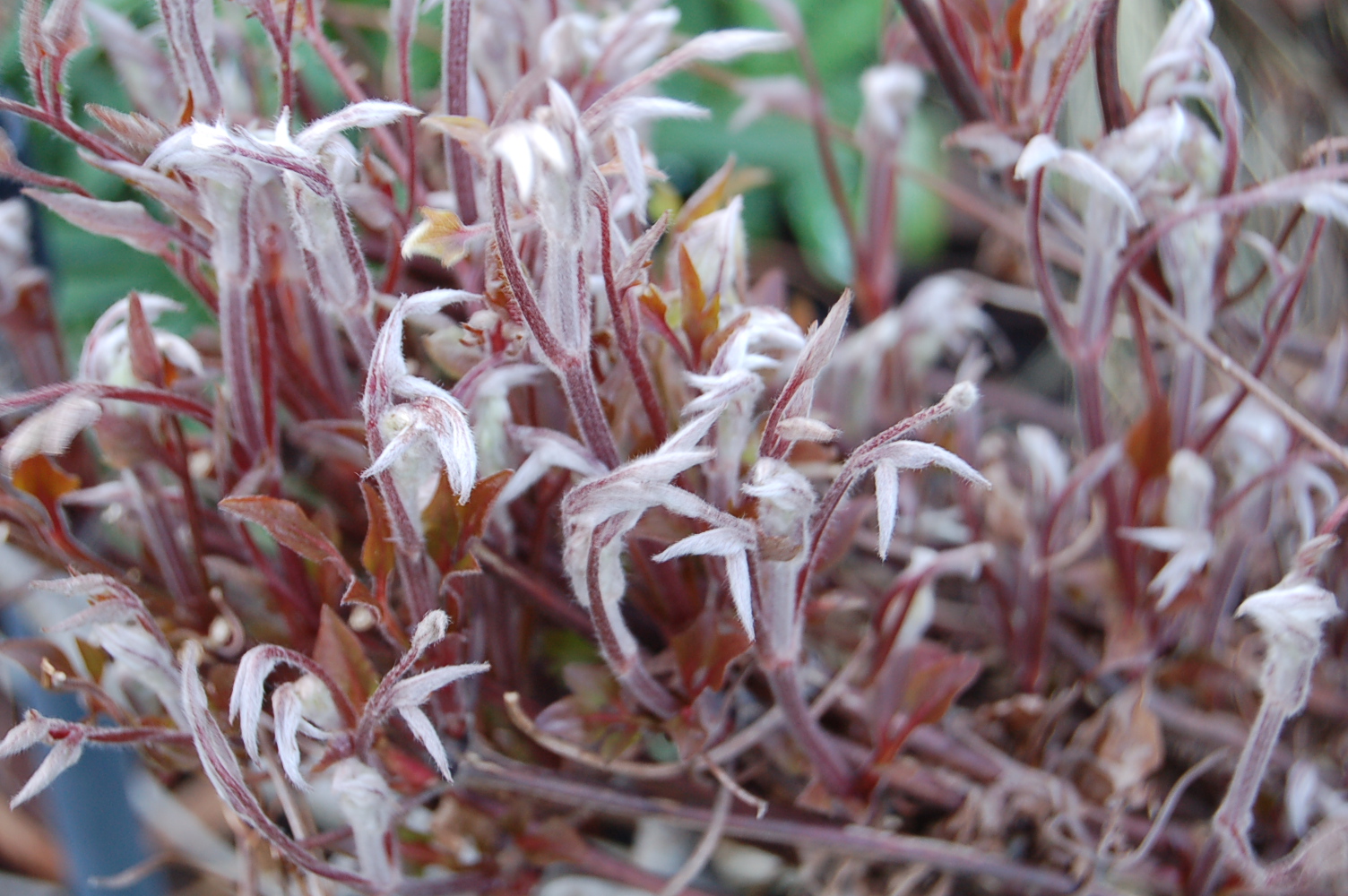 On the opposite page I continued, “Stem and bark plants of the month for March are acers. We grow a few dozen different acers in our garden, both shrubs and trees. When we buy a new one we look jointly at leaf colour and shape as well as bark interest be it colour pattern or texture.”
