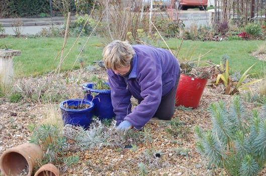 Next I looked at garden tasks we had to get done in March. “Tasks in the garden in March included planting a new long thin border at the bottom of our drive. The border is part in our garden and part in our neighbours. We planted a variety of thymes, low-growing sedum, plus small carex grasses and other succulents.