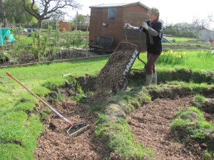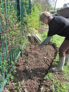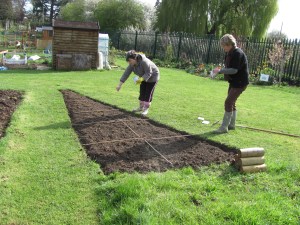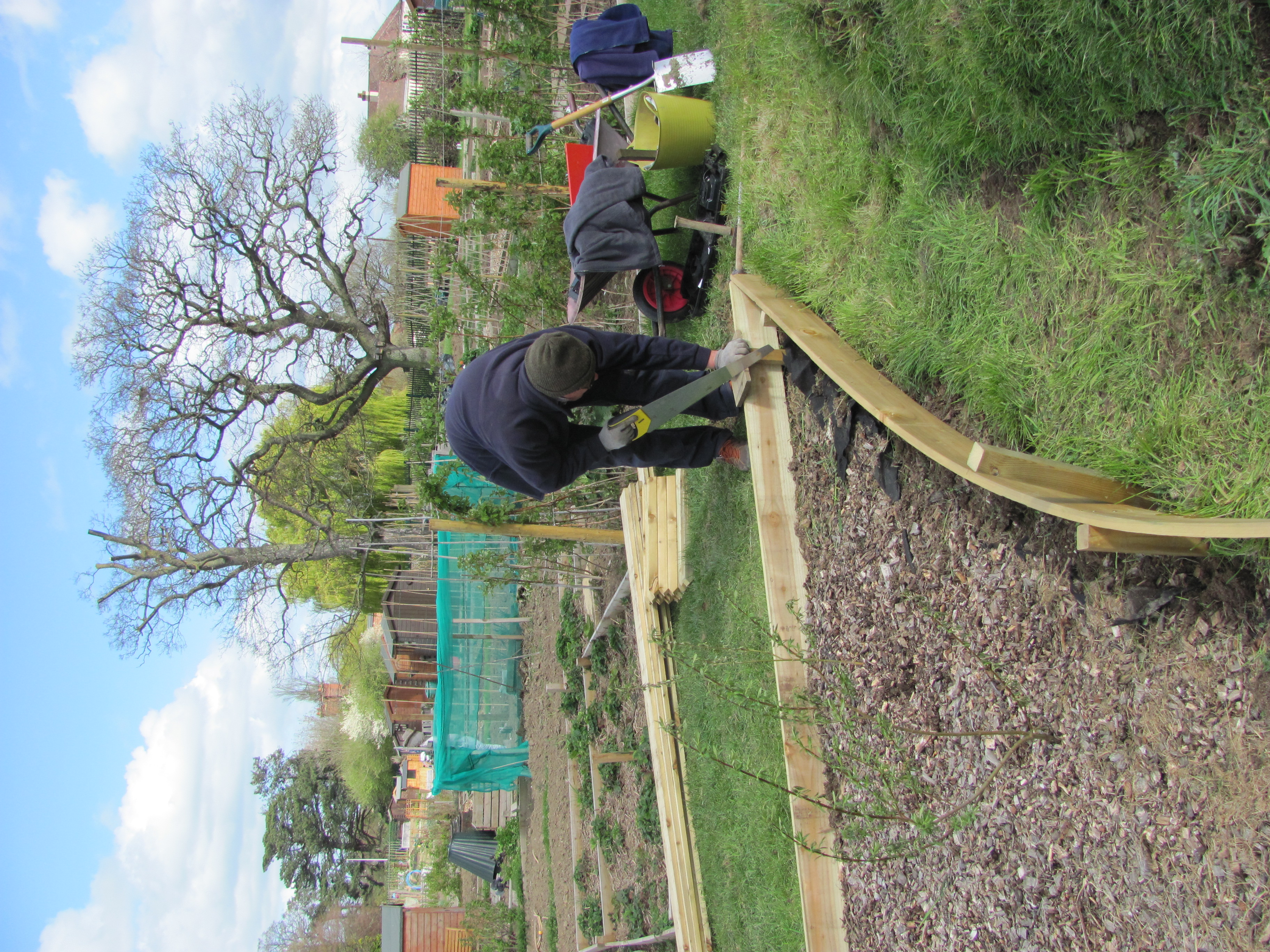 After resting our legs we aimed for the bridge that crosses the Onny where it becomes shallower and more rapid. Here the Onny took on the guise of a upland stream. From the bridge we spotted more Dippers and a Grey Wagtail, before moving on across the corner of a field where a stile showed us the way into the small Nature Reserve. We watched a pair of Red Kite soaring over the tops of the tallest trees. We made our way through the wood on narrow muddy tracks until we found the river once again. Following its banks we returned to the visitor centre dropping in on the community allotments on our way. Here tiny plots of land are available to local residents where they grow vegetables.