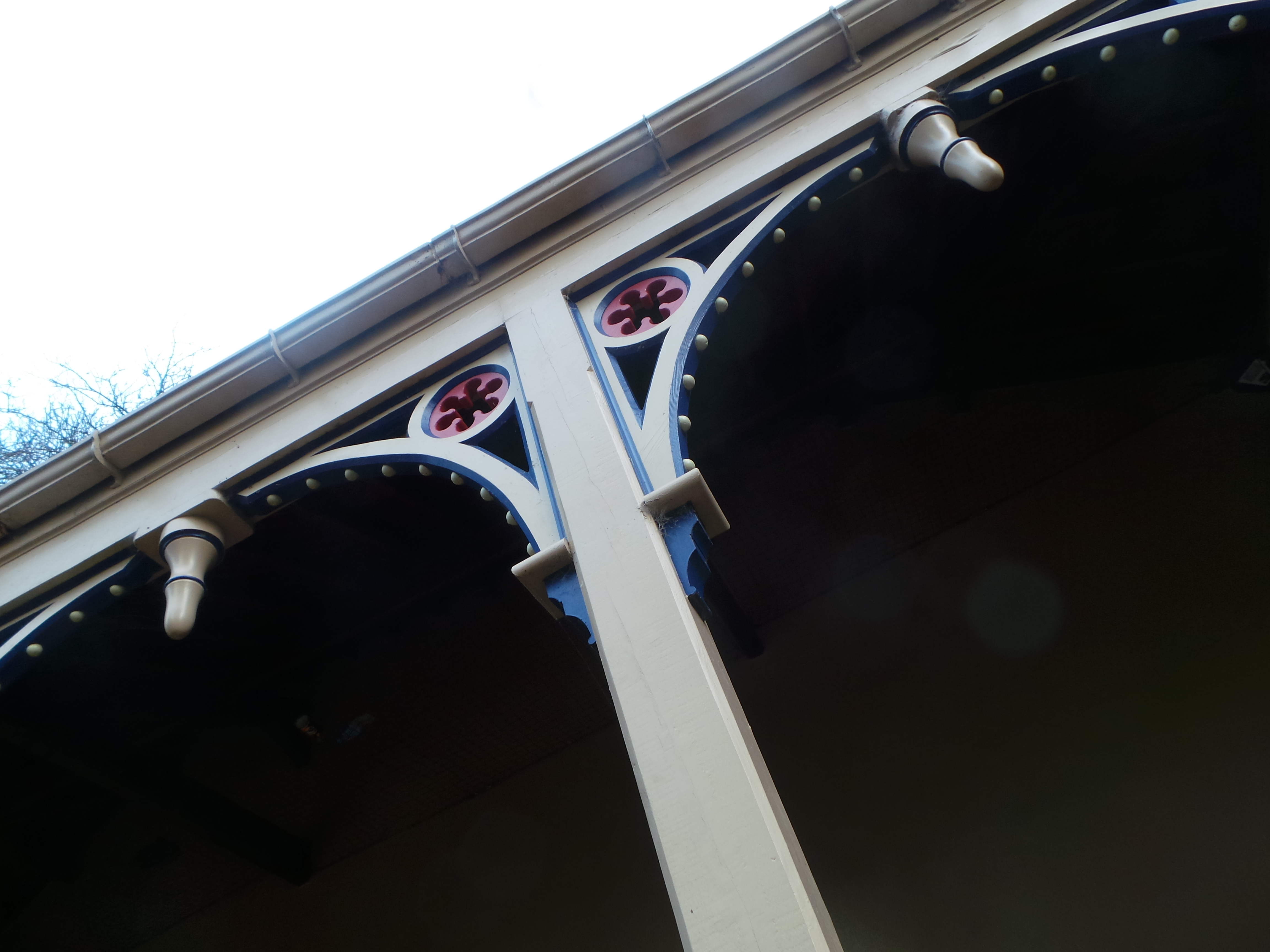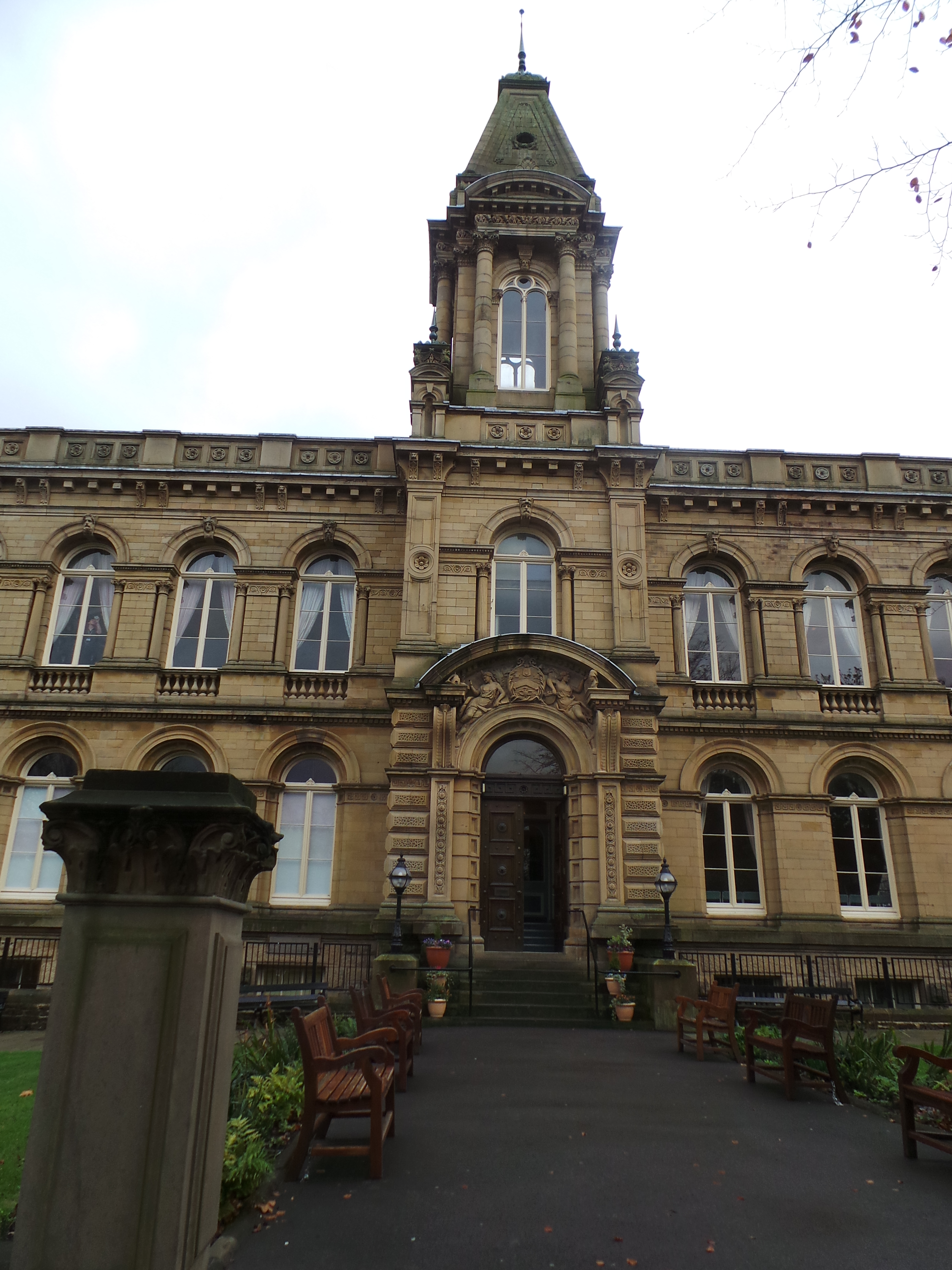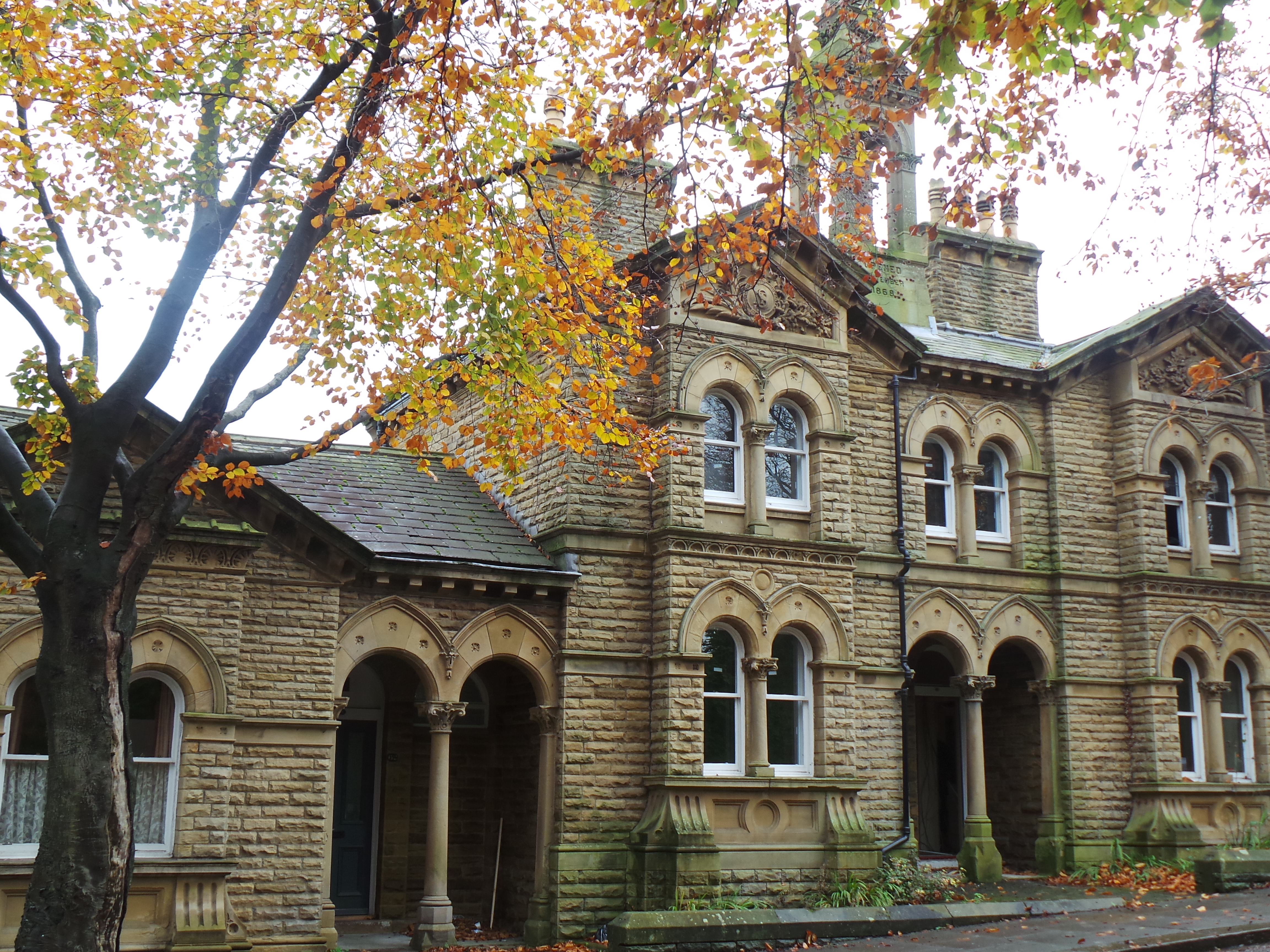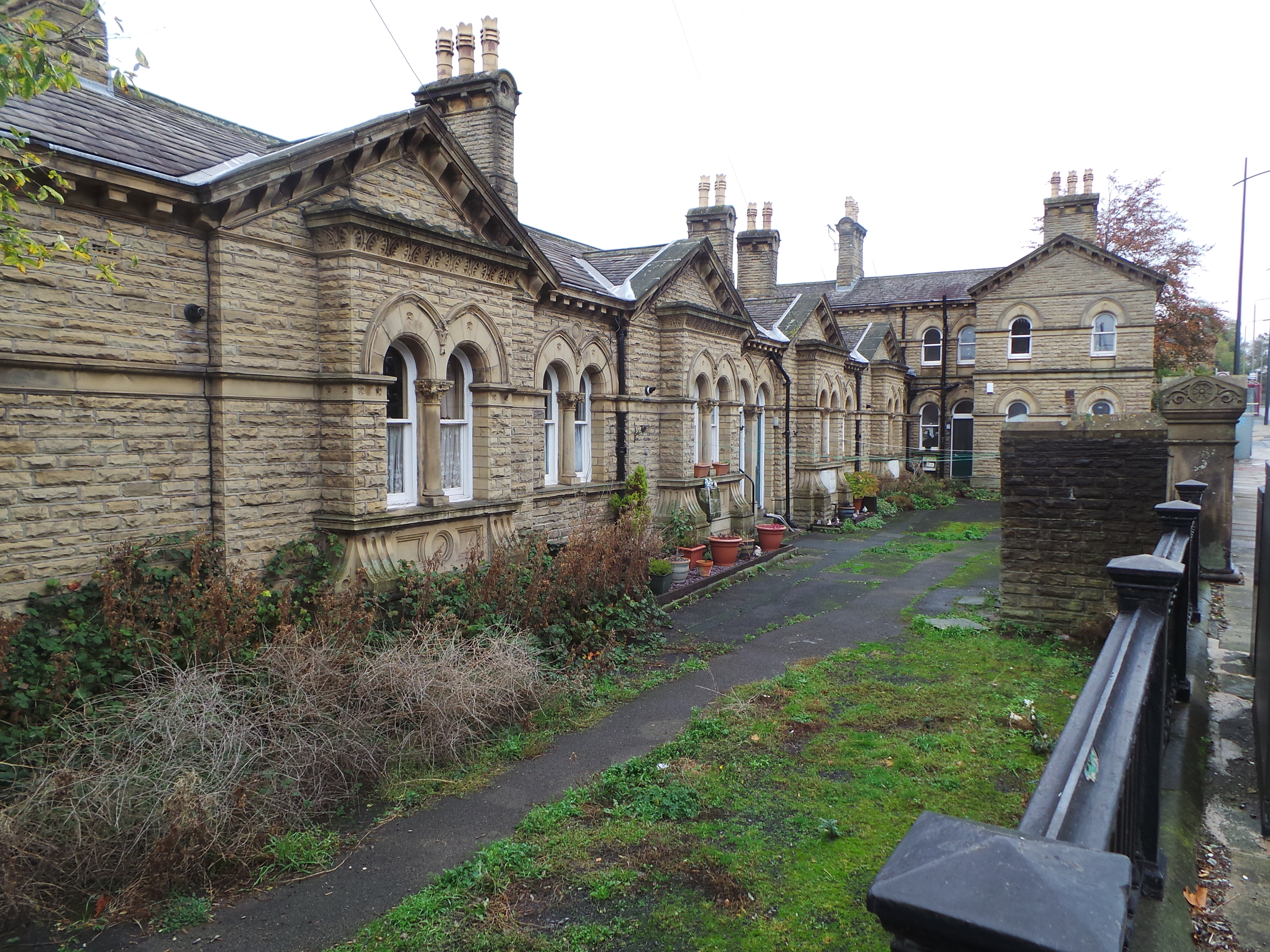 One of Titus Salt’s most thoughtful and forward thinking ideas was the provision of almhouses, which we found situated around Alexandra Square. These were homes for elderly and infirm persons “of good moral character”. The inhabitants of the almhouses were also given a pension, all this 40 years before the first state pension. The buildings themselves were very decorative and overlooked an open area of garden.