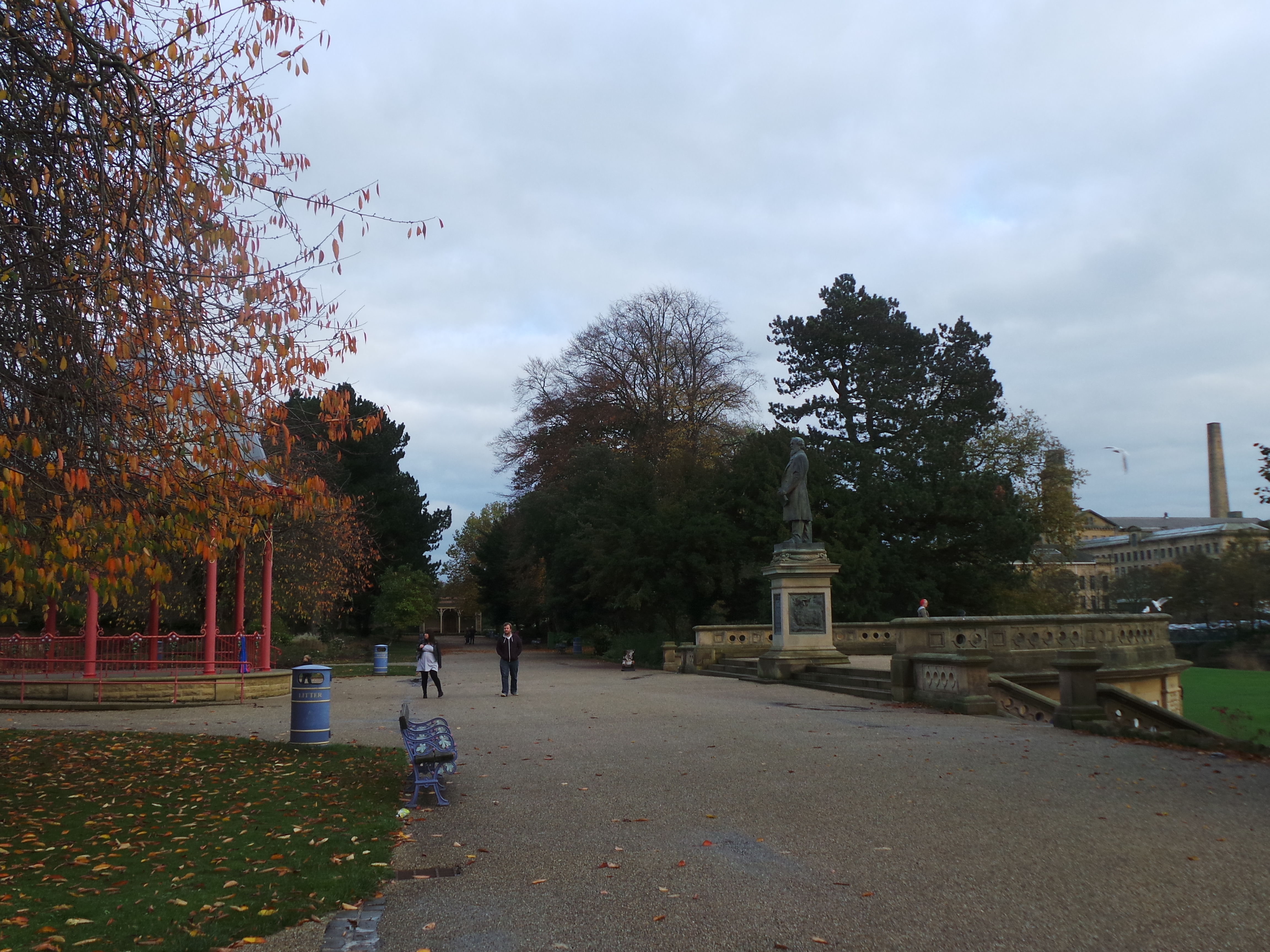 We were by this time well in need of a lunch break so made our way to the small area of shops and cafes in the centre. In part two you will find us in search of the social and community buildings, of which Titus Salt provided many. I leave you with another view of the mill with the allotments in the foreground. Salt ensured that there were green areas between the mill and his workers’ homes. The green spaces around the church served the same purpose.