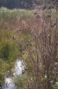 Although not great fans of coniferous trees we can appreciate them more in December when their heavy skeletal frameworks show well. Cones and the last of the flowers hang on their solid branches.