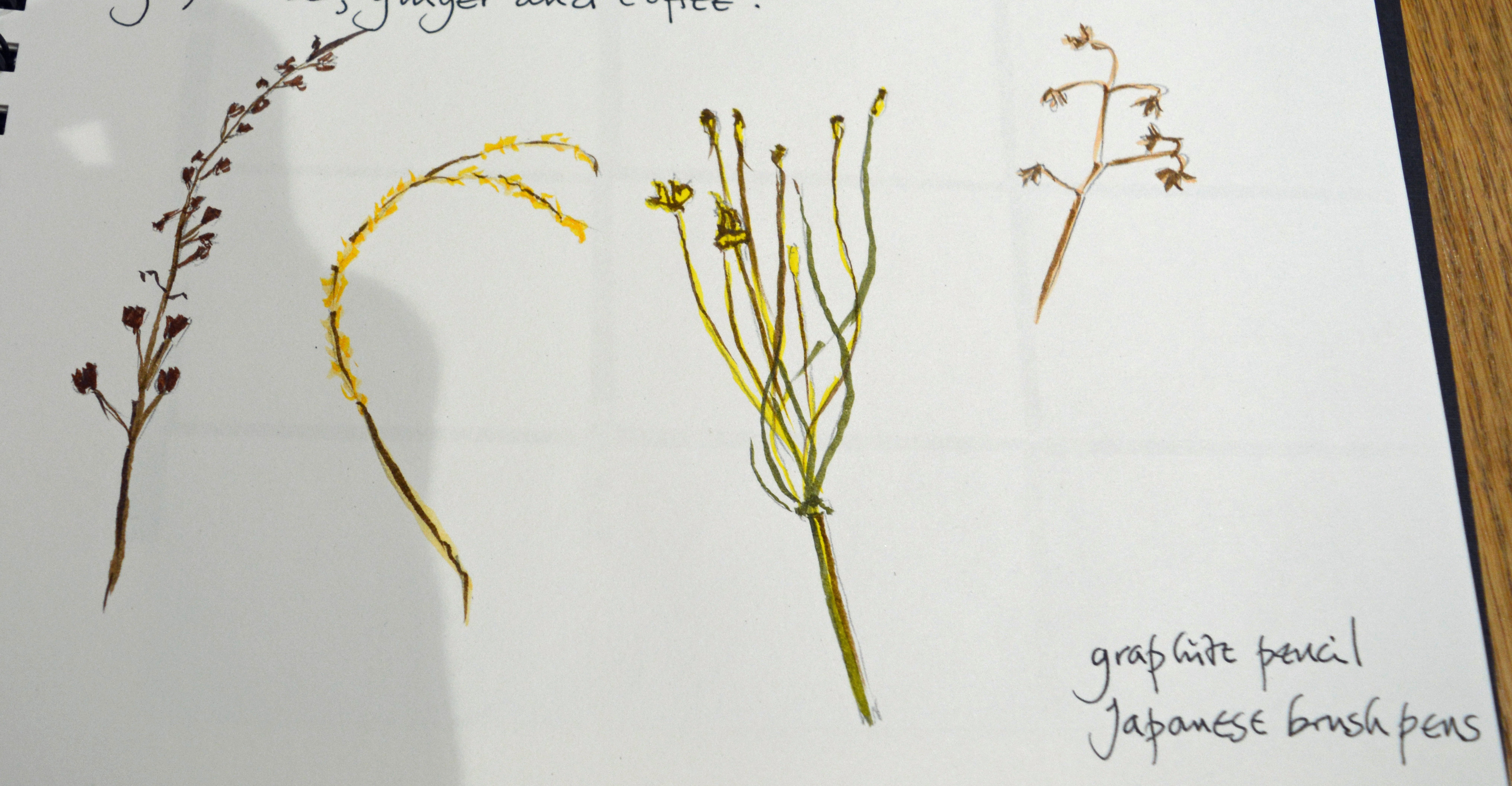 My next double page spread features the wonderful miniature shrub Ceratostigma plumbaginoides which I painted with my new set of Japanese brush pens.