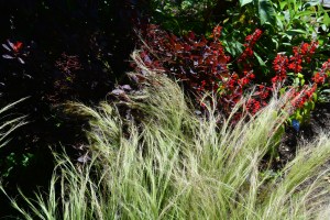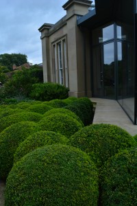 The show gardens use trimmed hedges of evergreens and topiaried ones to give strong structure or sometimes as frames for feature plants or other features. We were most impressed by the cloud pruning at the entrance to the Japanese Garden.