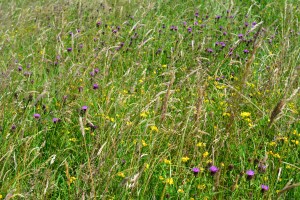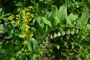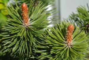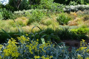 However the first shrub to catch my eye was a beautifully variegated holly, surely one of the best, Ilex ‘Golden King’. Close by, this conifer with long glaucous needles and loaded with cones was the first conifer we came across, the first of many.