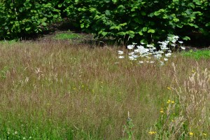 However the first shrub to catch my eye was a beautifully variegated holly, surely one of the best, Ilex ‘Golden King’. Close by, this conifer with long glaucous needles and loaded with cones was the first conifer we came across, the first of many.