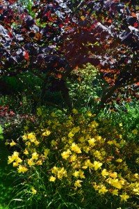 A mixture of coniferous and broadleaved evergreens always look even better. It seems to be the case because the broad leaf shrubs have more surface area of leaves to reflect the sunlight and also that variegated forms have a tendency to have paler coloured foliage.