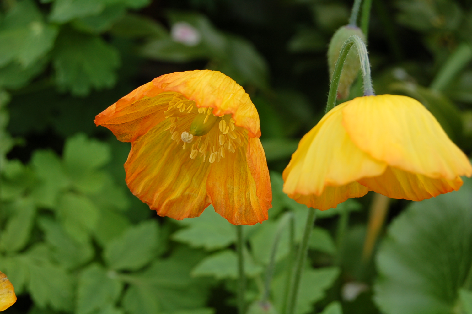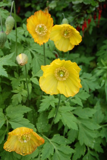 Just as beautiful but very easy to grow are the yellow Welsh Poppies, Meconopsis cambrica. They self seed throughout our garden and we enjoy them appearing just where they choose to do so in May each year. Their yellow petals also display hints and veins of red when the sunlight falls on them. They too are almost transparent and look too delicate to survive everything the British weather subjects them to.