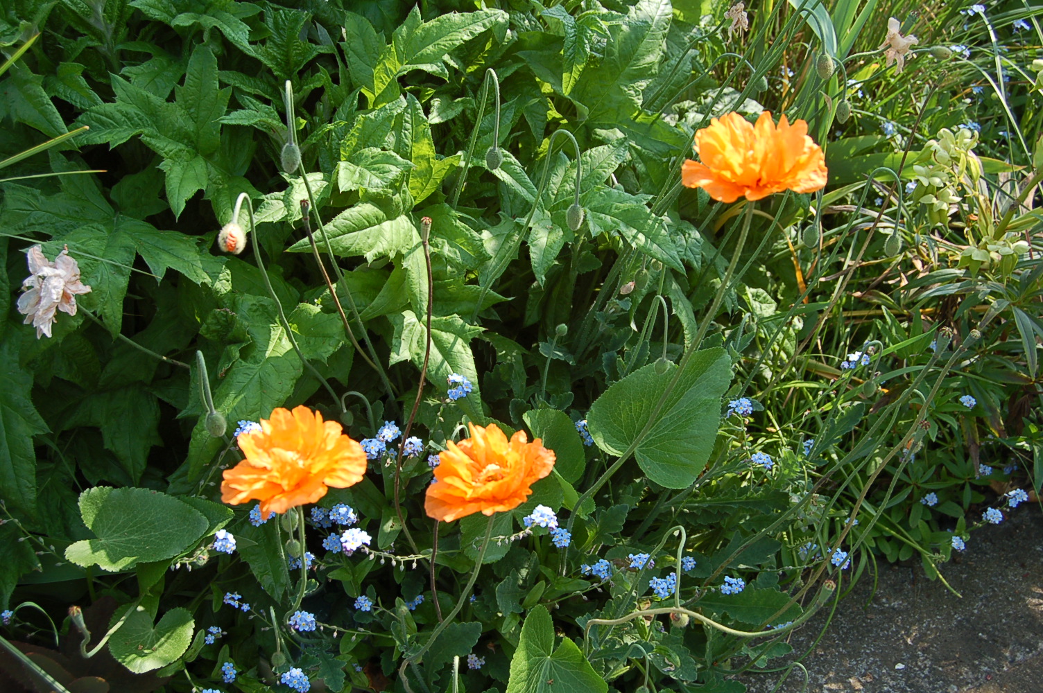 When they self seed they select their partners in the borders with care looking good wherever they land up. I wandered around our garden one sunny May day to see where they had chosen to appear this year. Although it is the most prolific self-seeder in our garden there is no way it can be called a weed, for if a weed is a plant in the wrong place, the Welsh Poppy always lands in the right place.