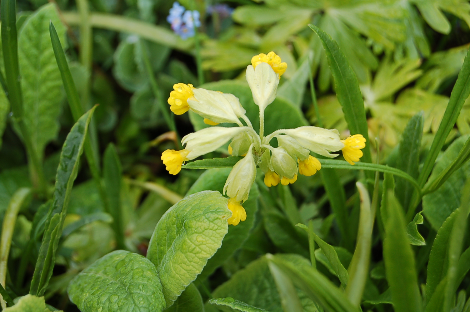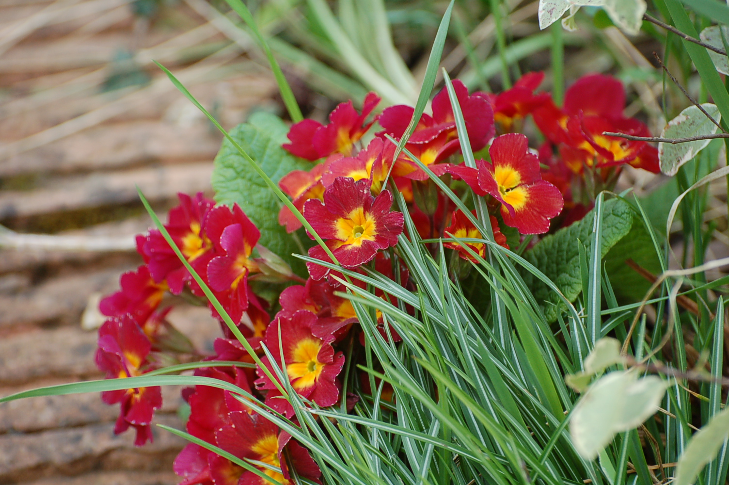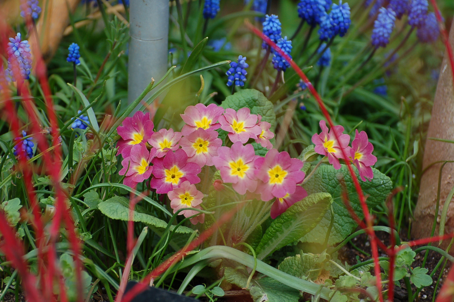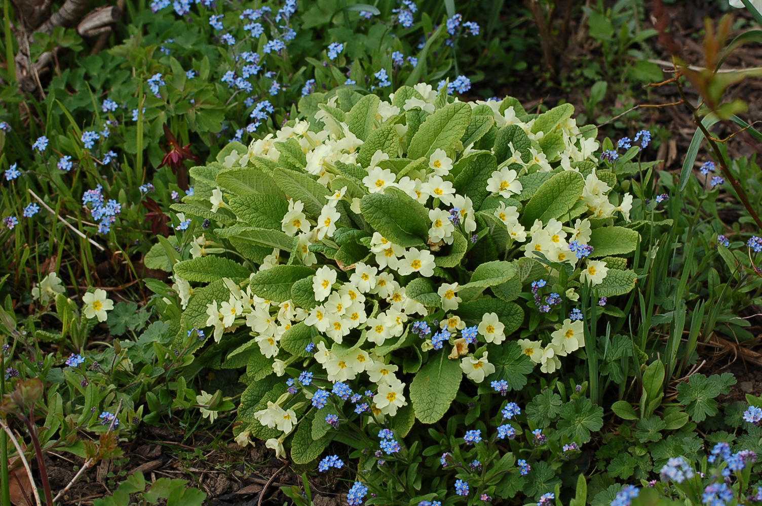 Complementary colours blue and yellow present great partnerships. A blue Anemone blanda teamed up with a native Primrose stops me in my tracks every day as I wander along the grass path by the Spring Garden, they are simply perfect together.