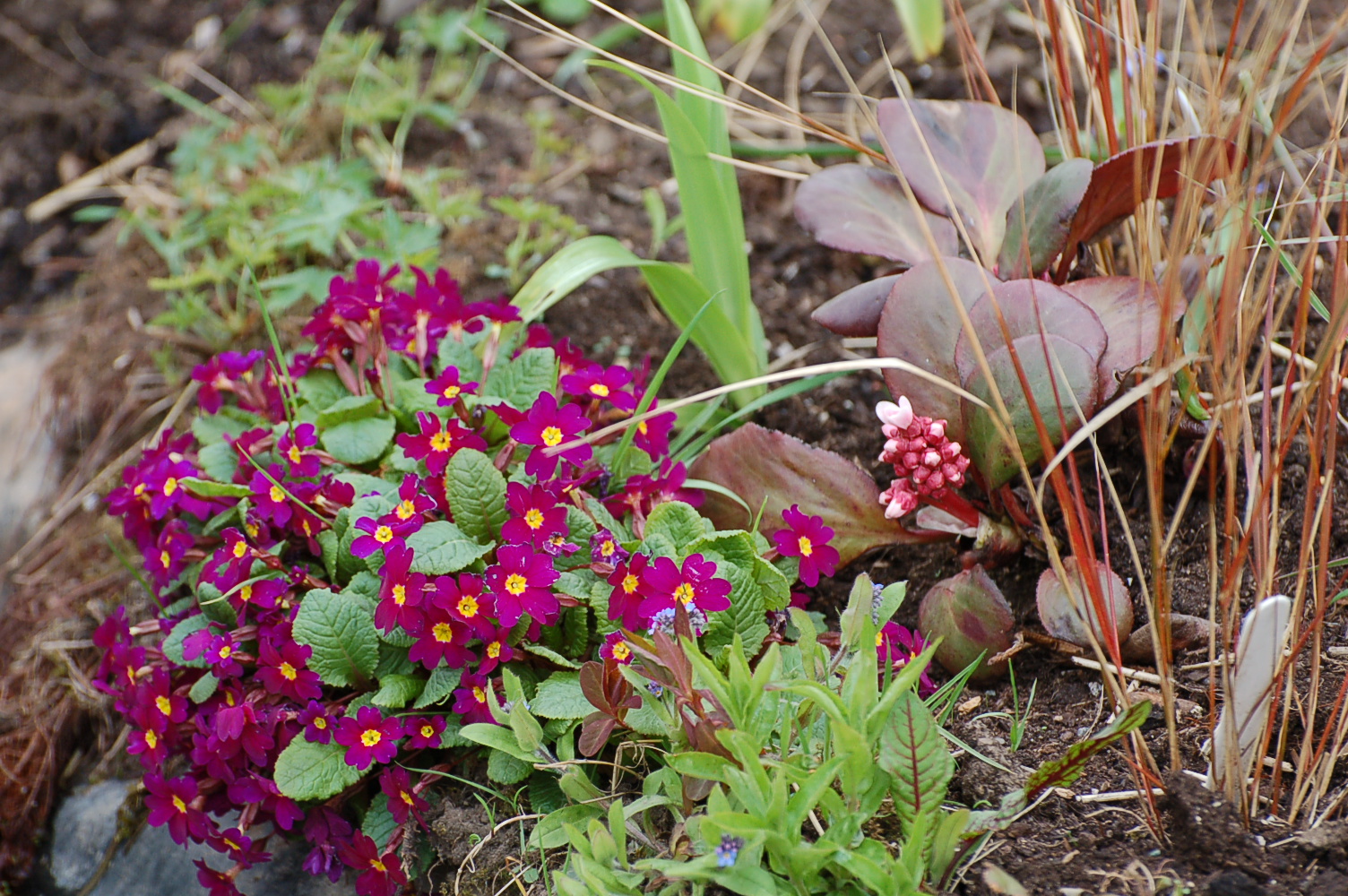 They mingle happily with old garden tool bits we dug out of the ground when we first developed our garden.