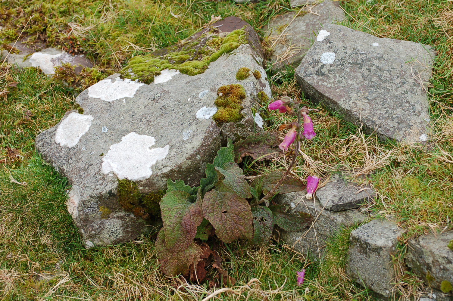 The cold was penetrating too deeply and lack of sustenance was beginning to tell so we turned away from the sun and made our way back to the parting of the paths to begin the descent through the bracken and bilberries along the grassy track. The wind was now on our backs, so biting less and even helping us on our way a little.