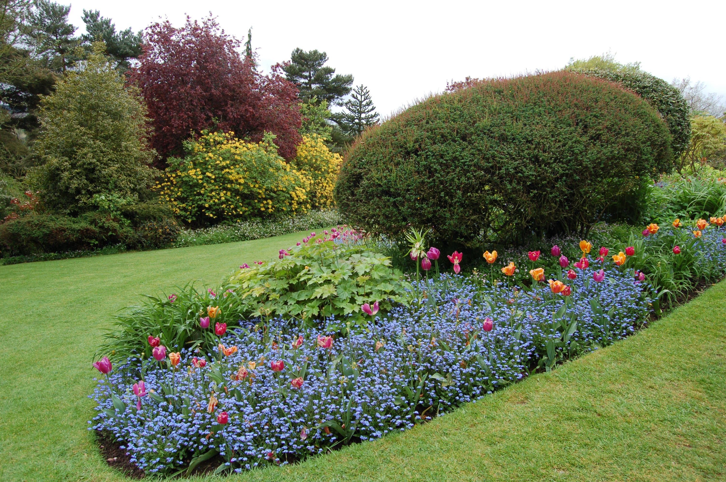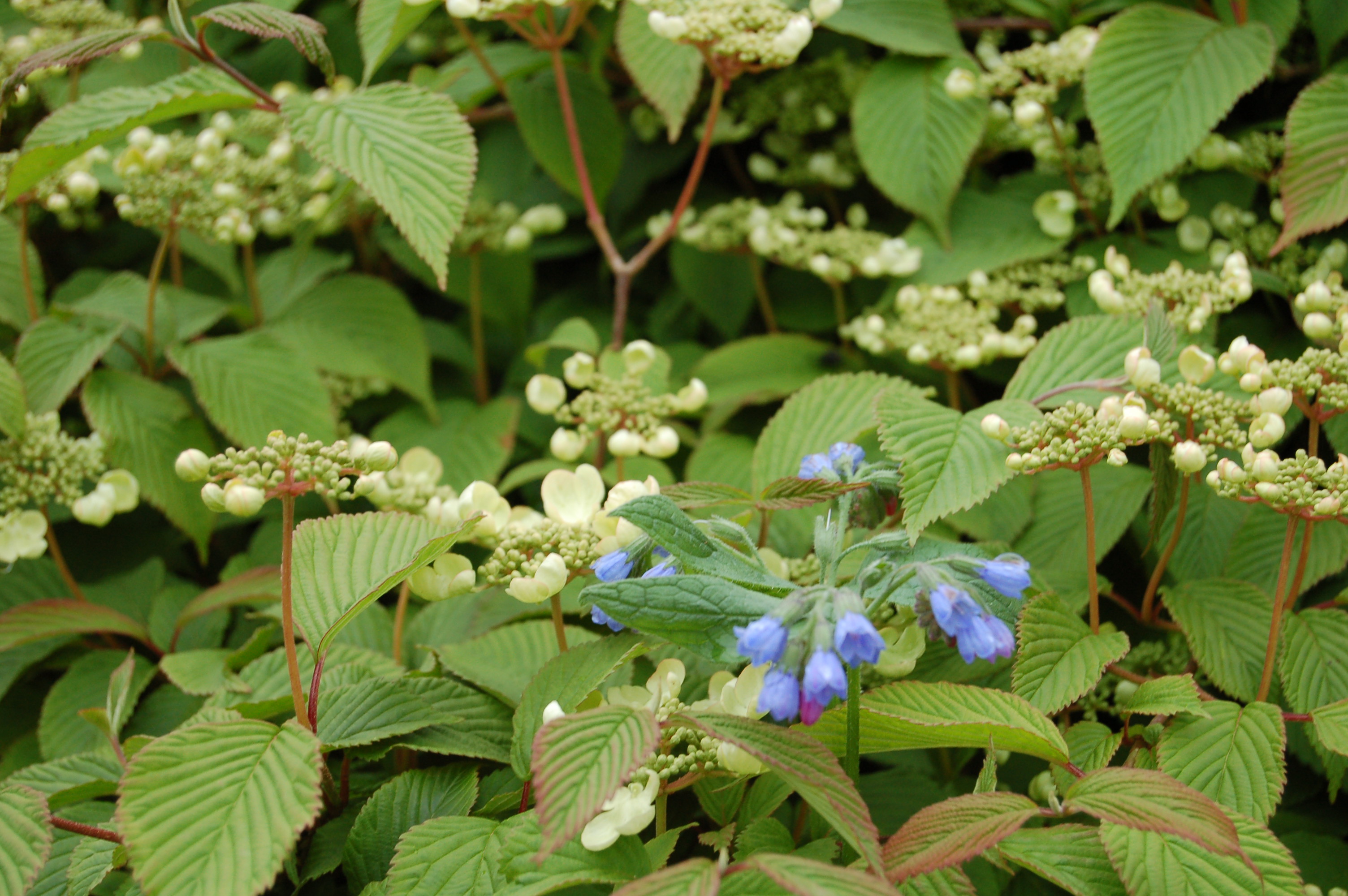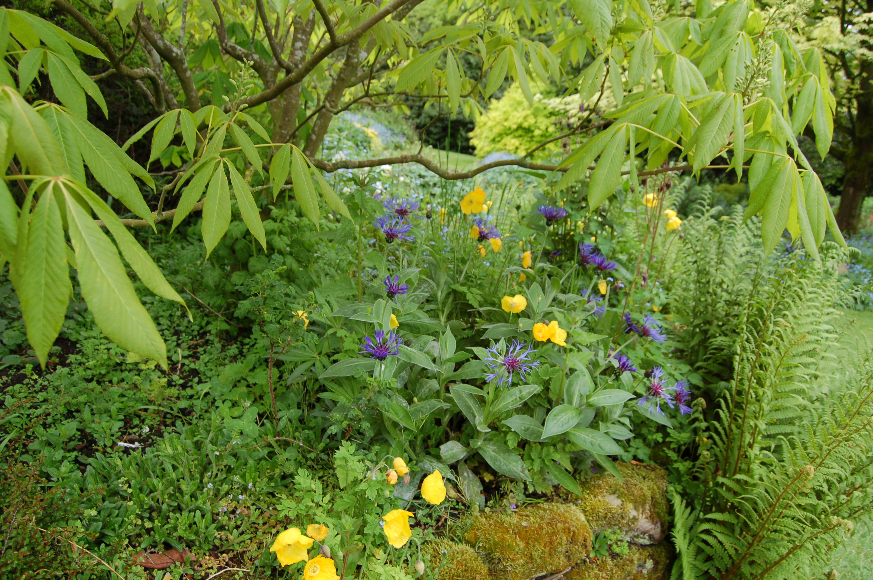 However for our May visit the sun shone, the sky was clear blue and the warmth allowed us to have a very leisurely stroll around the garden. We had so far this year seen little change from month to month as spring was on hold but this May visit was a strong contrast. We found the garden rich in flowering shrubs and strong fresh growth everywhere.
