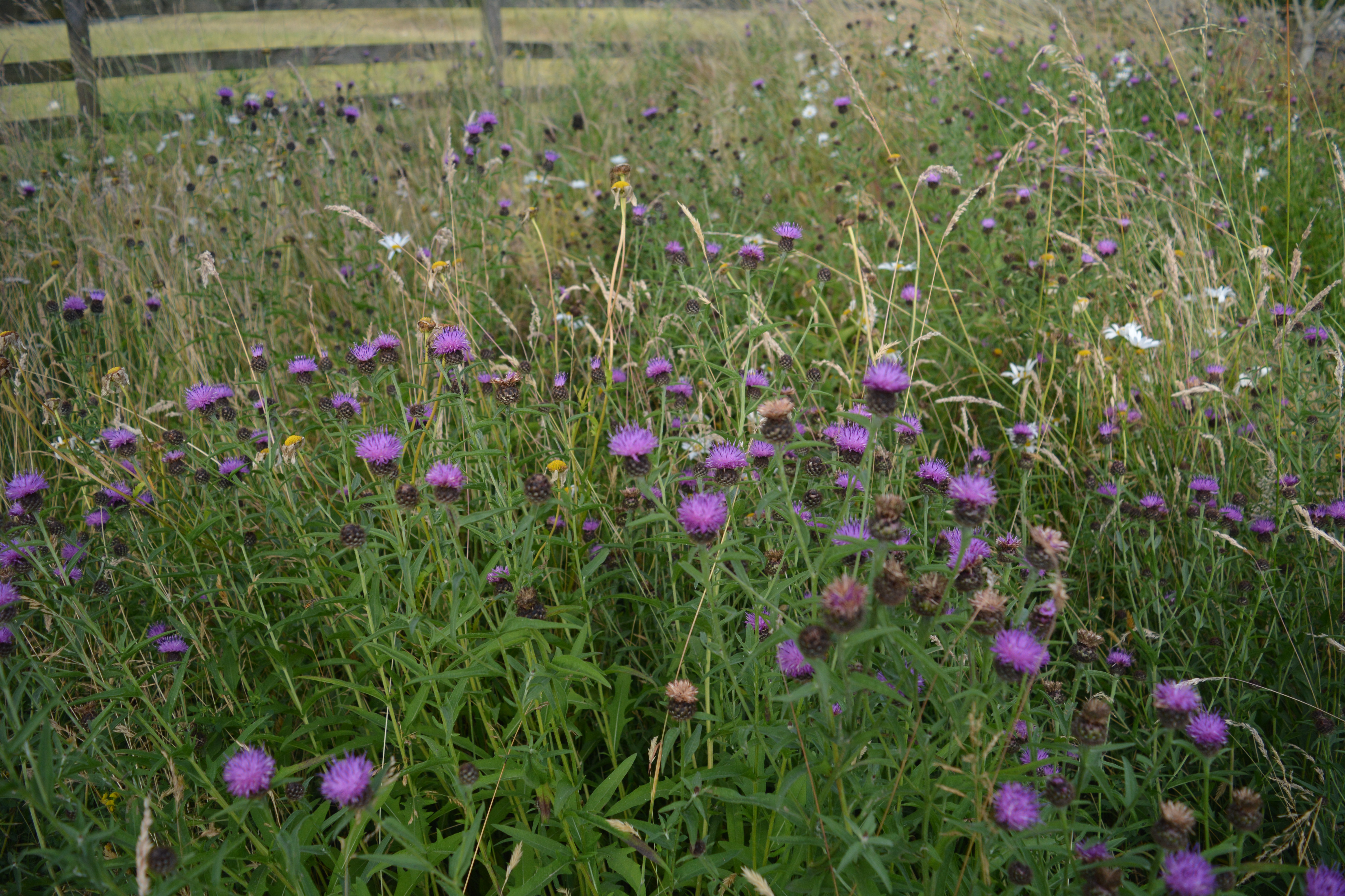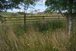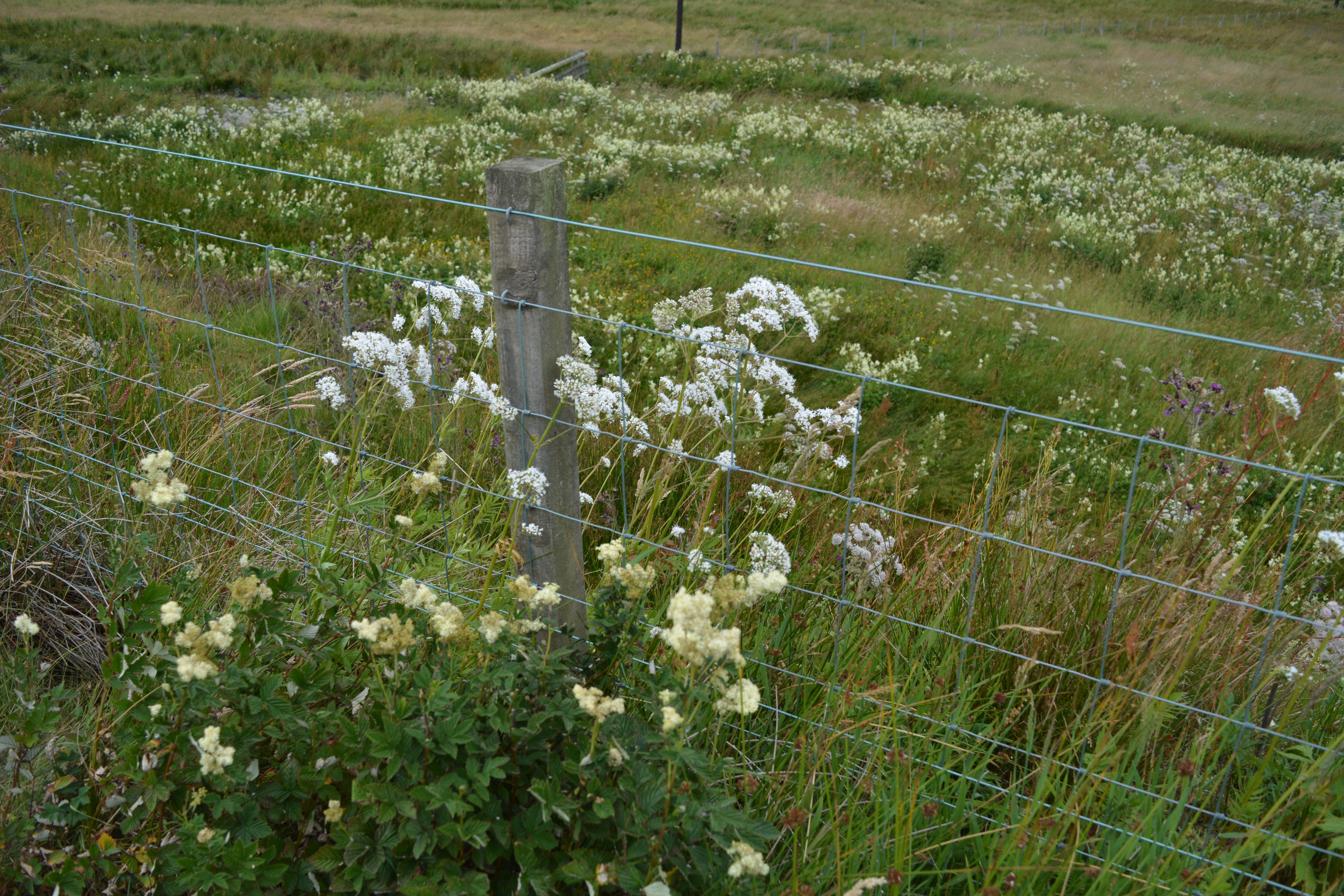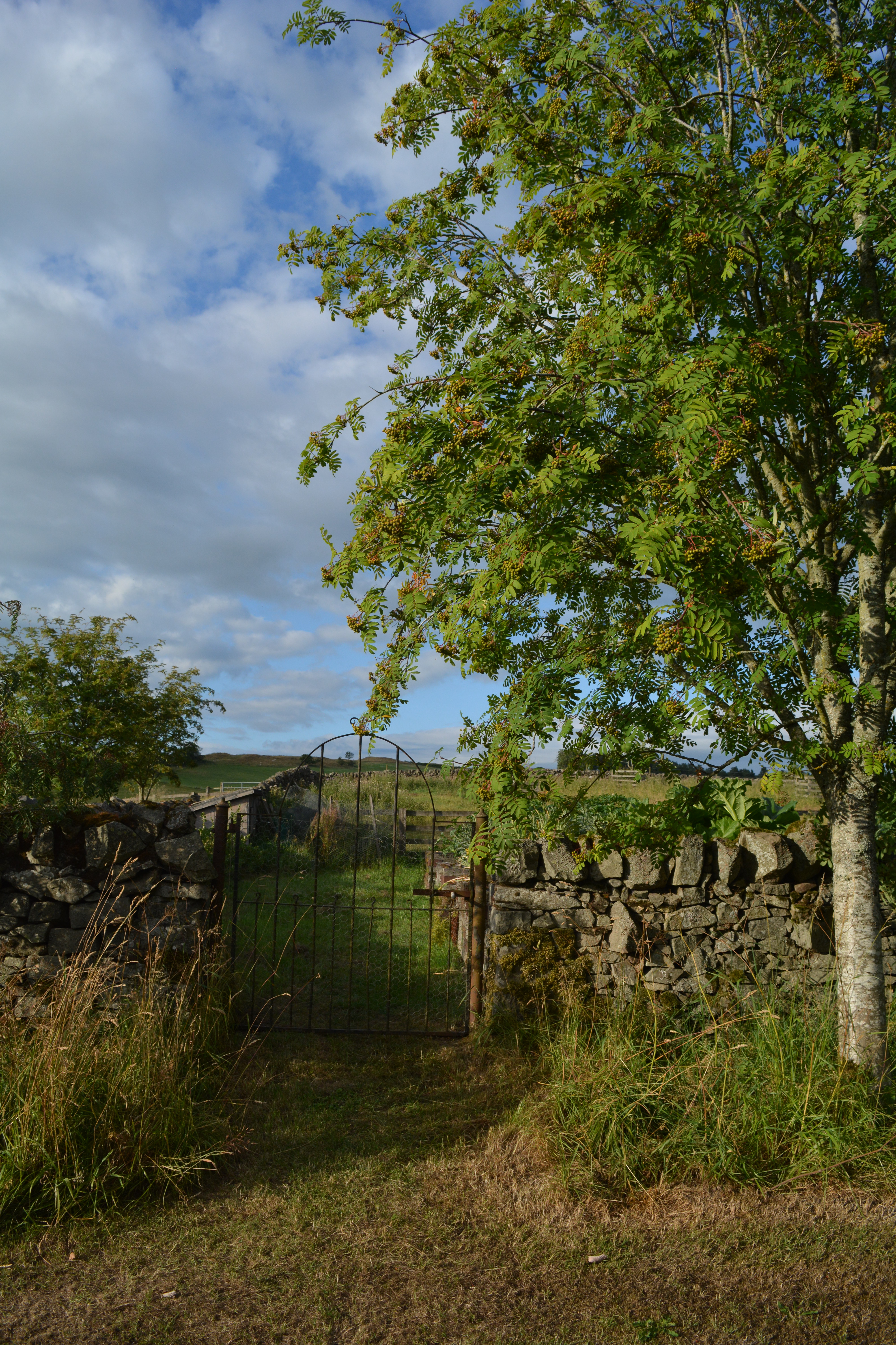 We parked in the tiny carpark and followed a rough gravel track for almost half a mile up the slope to the garden entrance. We can’t remember visiting many gardens without vehicle access at least reasonably close. The walk up took us through beautiful Scottish farmland complete with sheep and cattle.