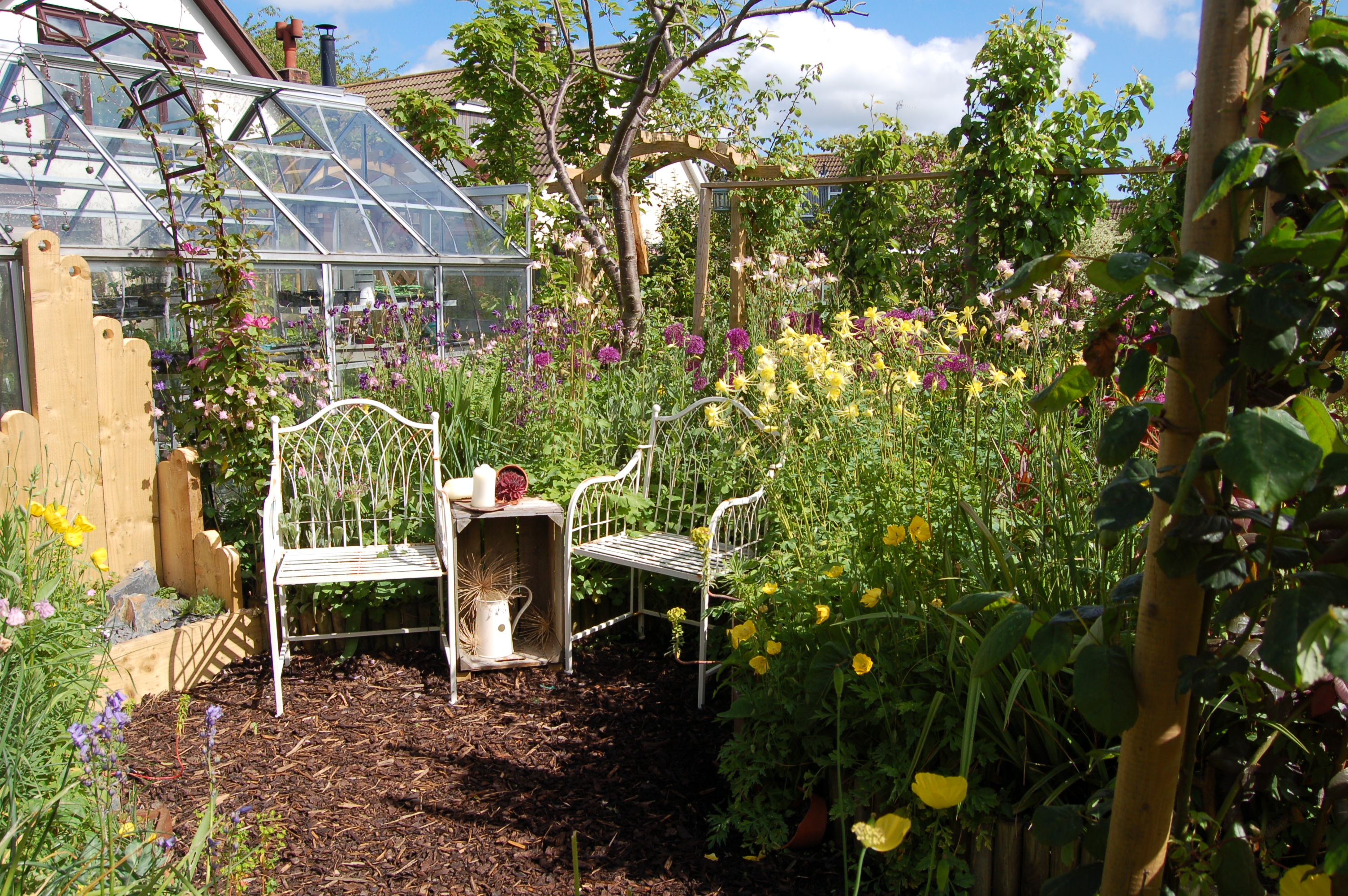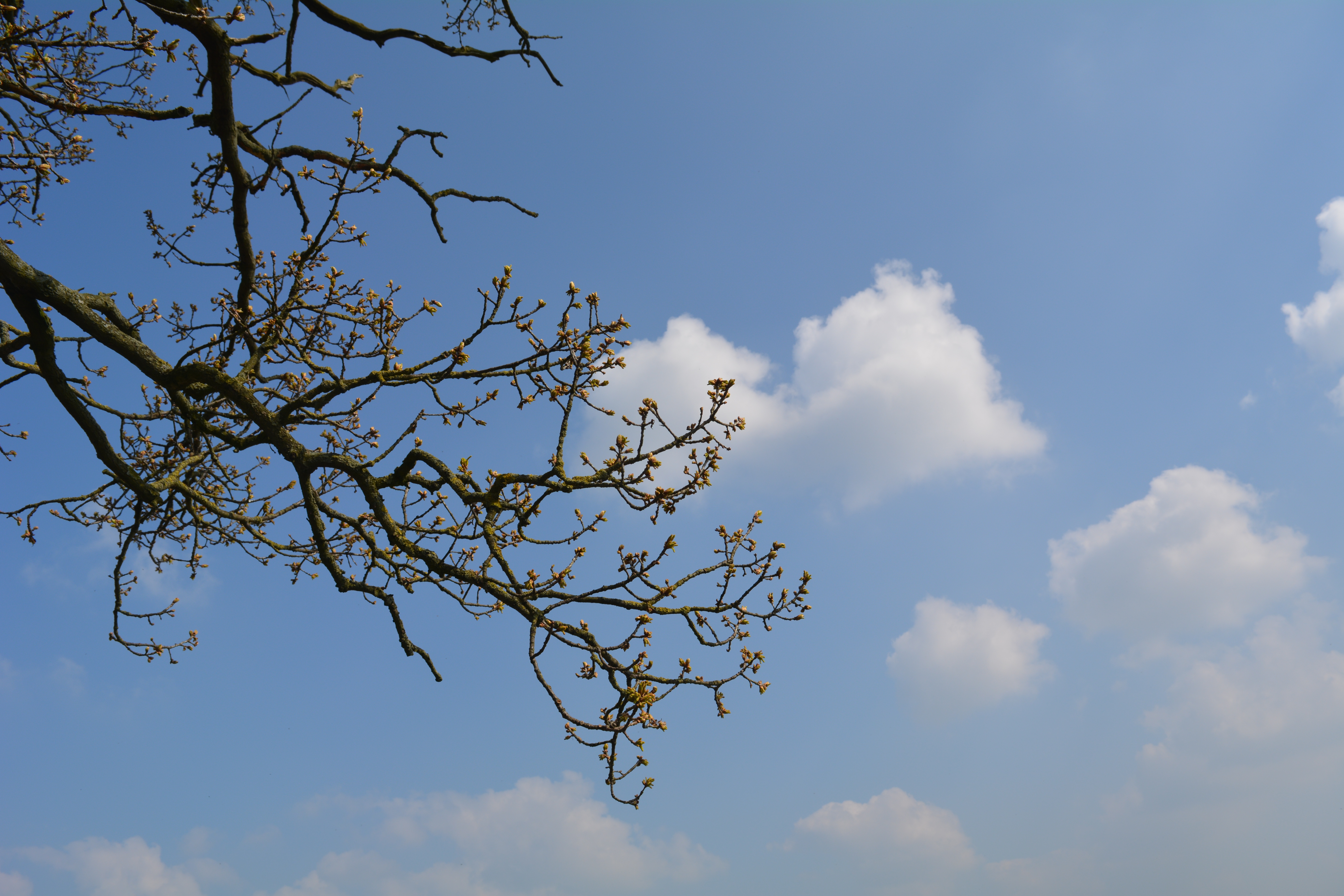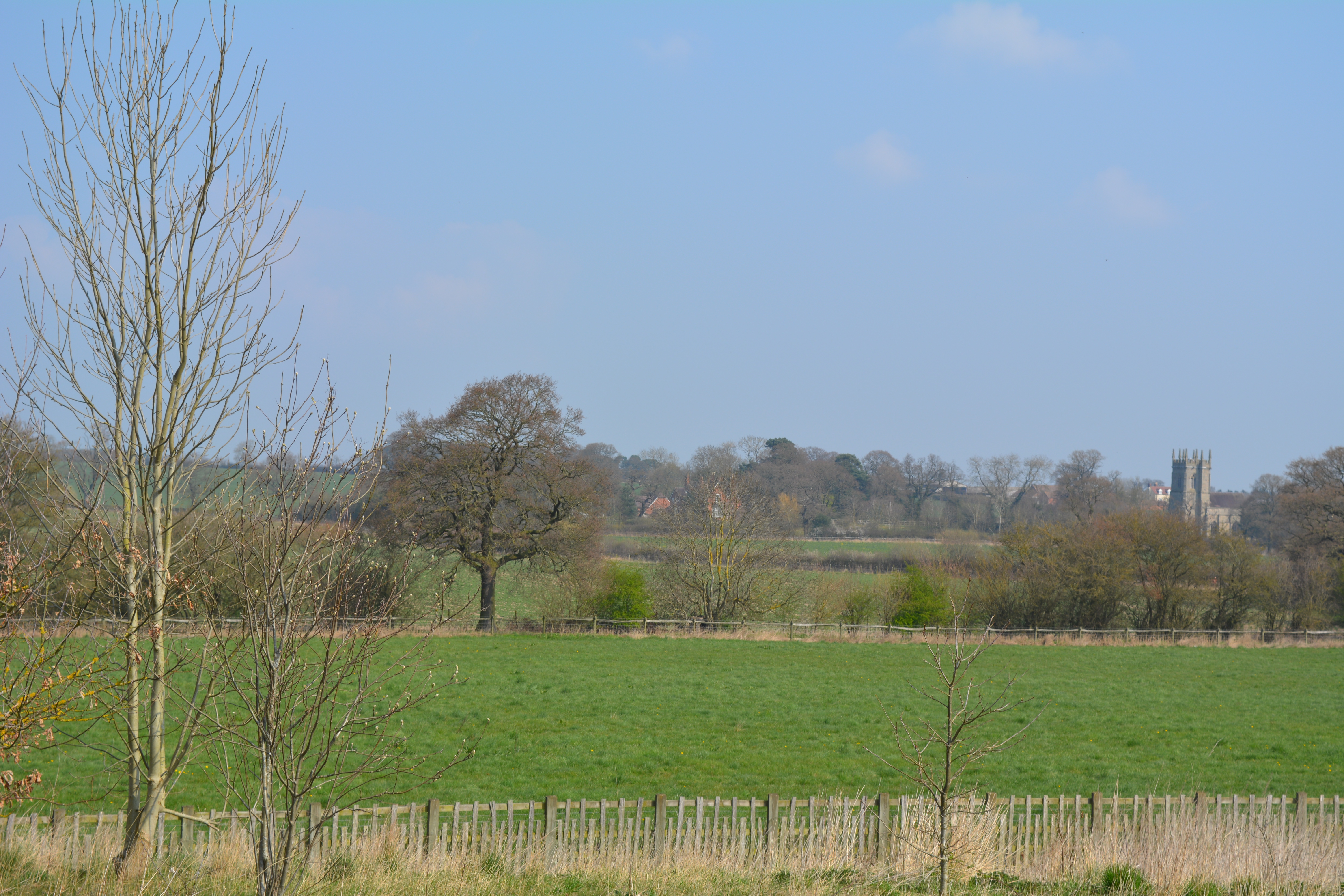 Some trees were still bare skeletons against the blue skies.