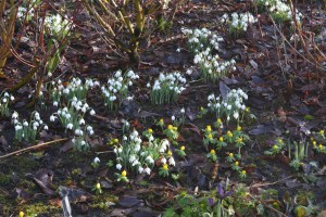 There was so much to see in Adam’s Garden as we slowly made our way around enjoying interesting collections of conifers, Witch Hazels and a variety of trees. In addition to this there were some large mixed borders in front of the cream coloured glasshouse. Snowdrops were a feature of these borders with lots of different ones to study and in some cases try to see what was significantly different enough about them to deserve a name and a place in garden centres and nurseries in the future.