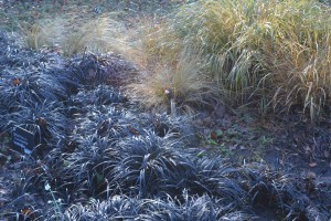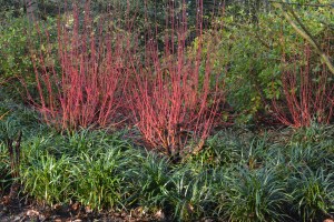 After studying the conifers, we wandered towards the glasshouse and the island beds. We were most impressed to see the way coloured stems had been used to add extra colour to containers of hellebores. The island beds showed how Carex can be used to create rivers of colour.