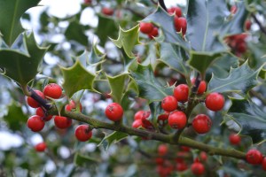 On the following double page spread I moved on to look at some of our berries and foliage plants giving interest in January. On the first page I wrote, “Throughout the winter birds especially members of the Thrush family enjoy gorging on the berries on our trees and shrubs. We grow berrying plants for the birds to eat as well as for our own visual feast. By January a few are still left over.”