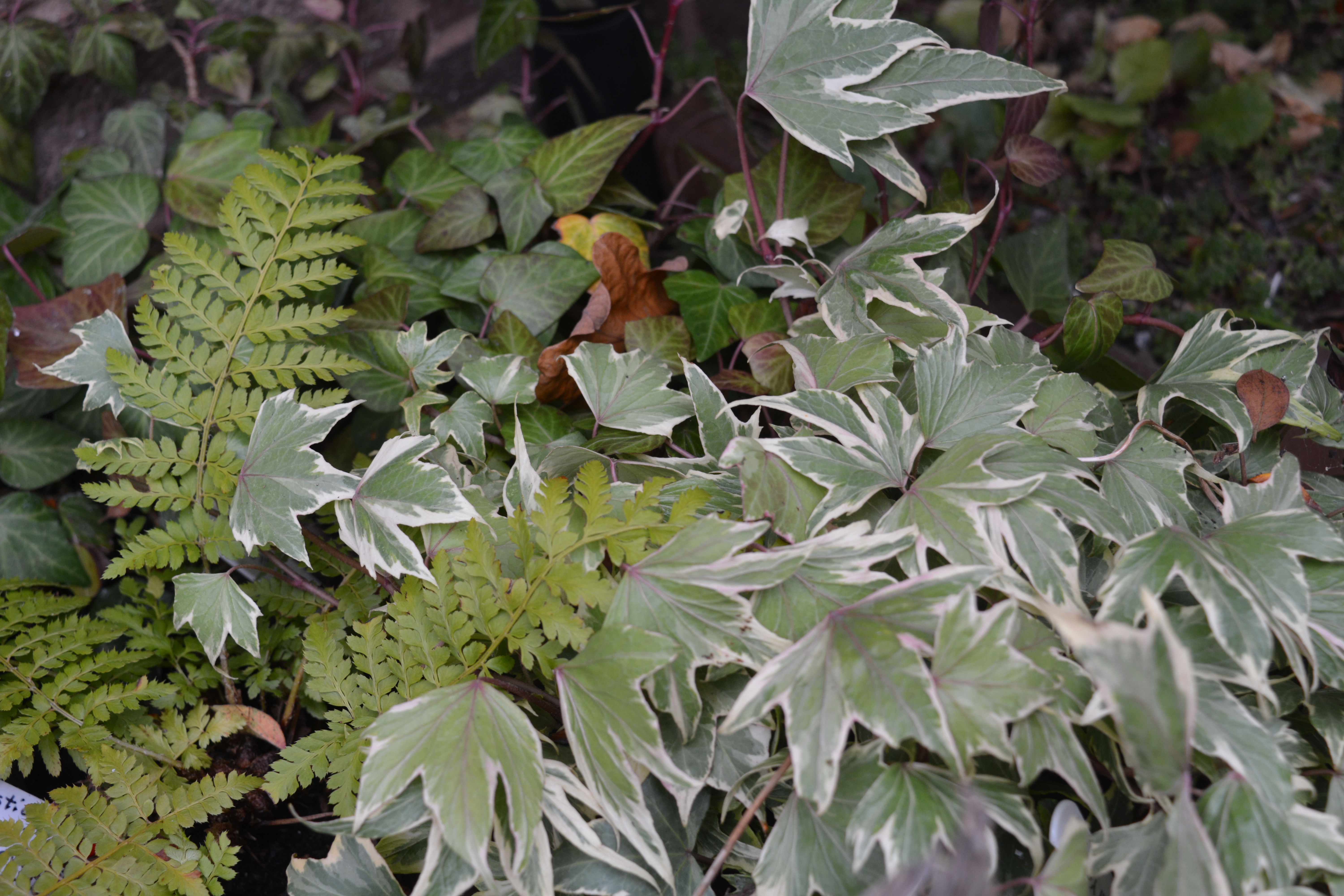 We can now look at the opposite page and consider some of our interesting foliage, where I wrote, “In January interesting foliage catches the eye, variegation, dusting with silver, glaucous or ruby coloured.”