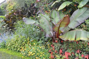 The top terrace features perennials and shrubs that give of their best in late summer into early autumn. Some are difficult to grow and several are half-hardy but the special conditions here allow then to flourish. To see them growing so well and looking so happy certainly encouraged us to try more such plants at home. We have lots of succulents and Salvias already but we are always up for a challenge!