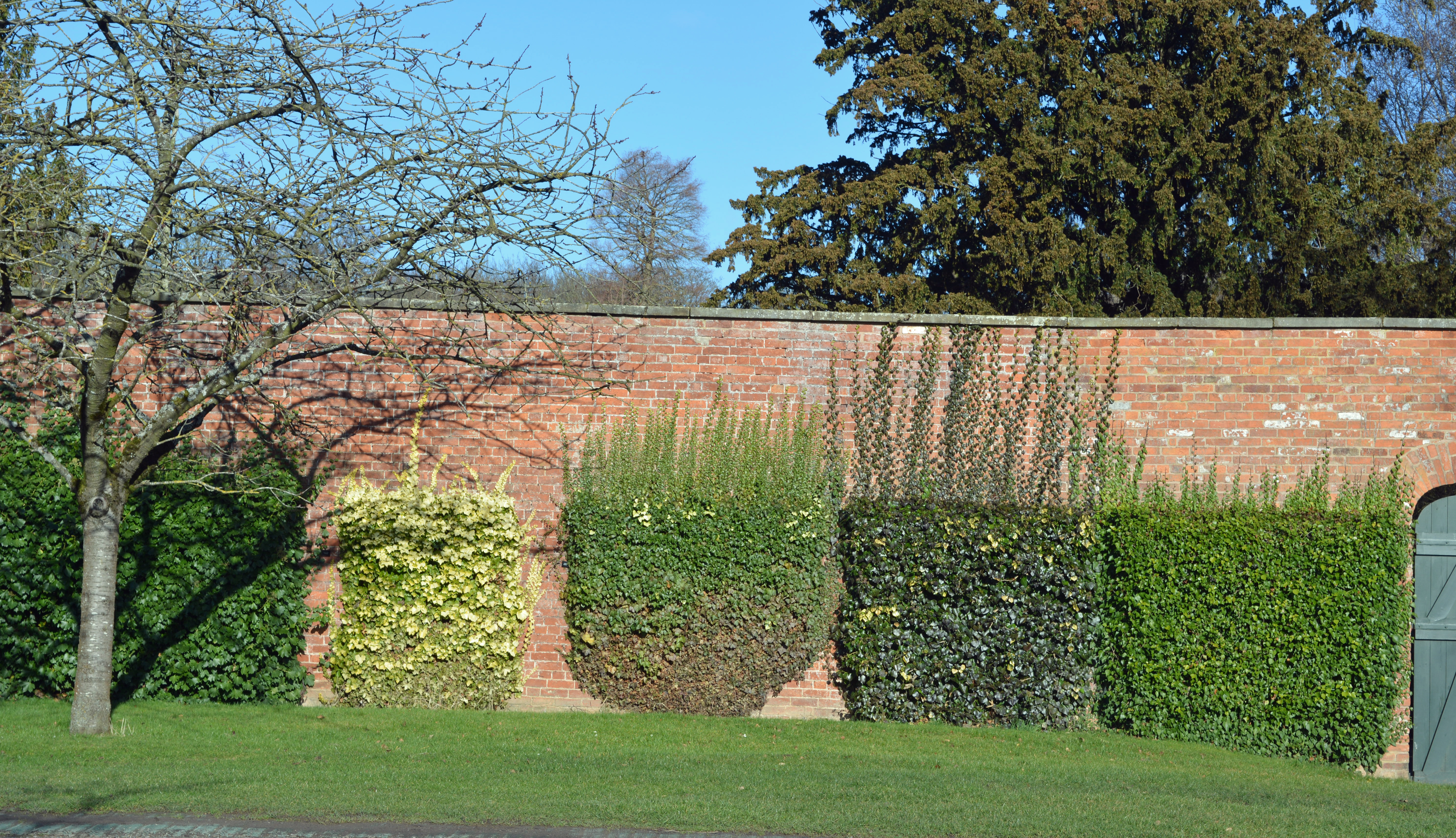 Snowdrops in drifts light up the ground beneath the tree. Ilex “Ferox” sparkles with variegated leaves curled and heavily spined, probably one of the best hollies available for the small garden.