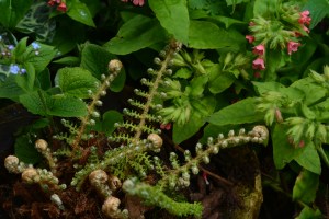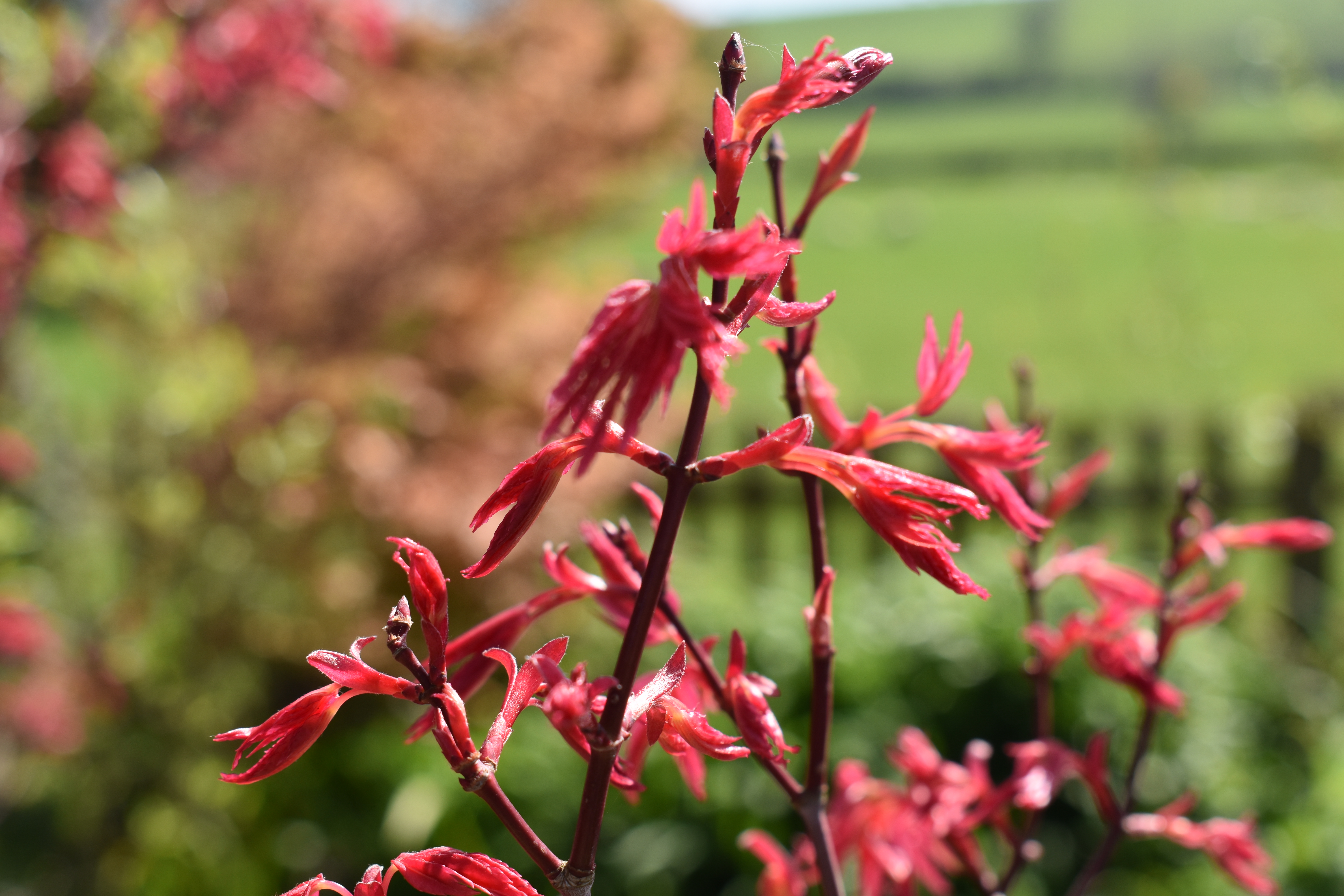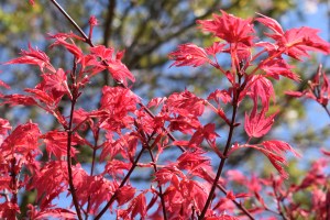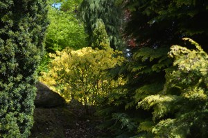 It was so heartening to see fresh new foliage bursting from their buds. This acer had bright new leaves drooping downwards with flower buds hanging below in contrasting reds. A feature of springtime is the sight of ferns unfurling in typical crozier patterns.