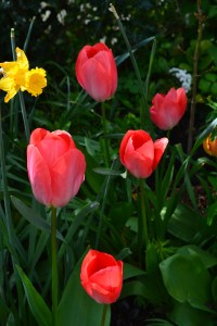 I wrote, “We seem to have more daffodils to enjoy in our garden than ever before, and they soon get the company of tulips joining the Muscari, Leucojum and the little blue flowered bulbs.”