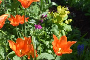 By early May most of our tulips will have flowered and then dropped their petals. All the early herbaceous perennials are waiting to take over for months.