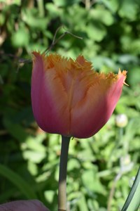 They provide masses of different colours and varied petal shapes, some even show off their frilly cut edges. We plant more each autumn so our stock is increasing slowly but we also lose a lot each year to winter damp and viruses. Planting new bulbs will carry on every year. Some are extra special such as this one with frilled edges to its petals where they turn from pink to yellow.