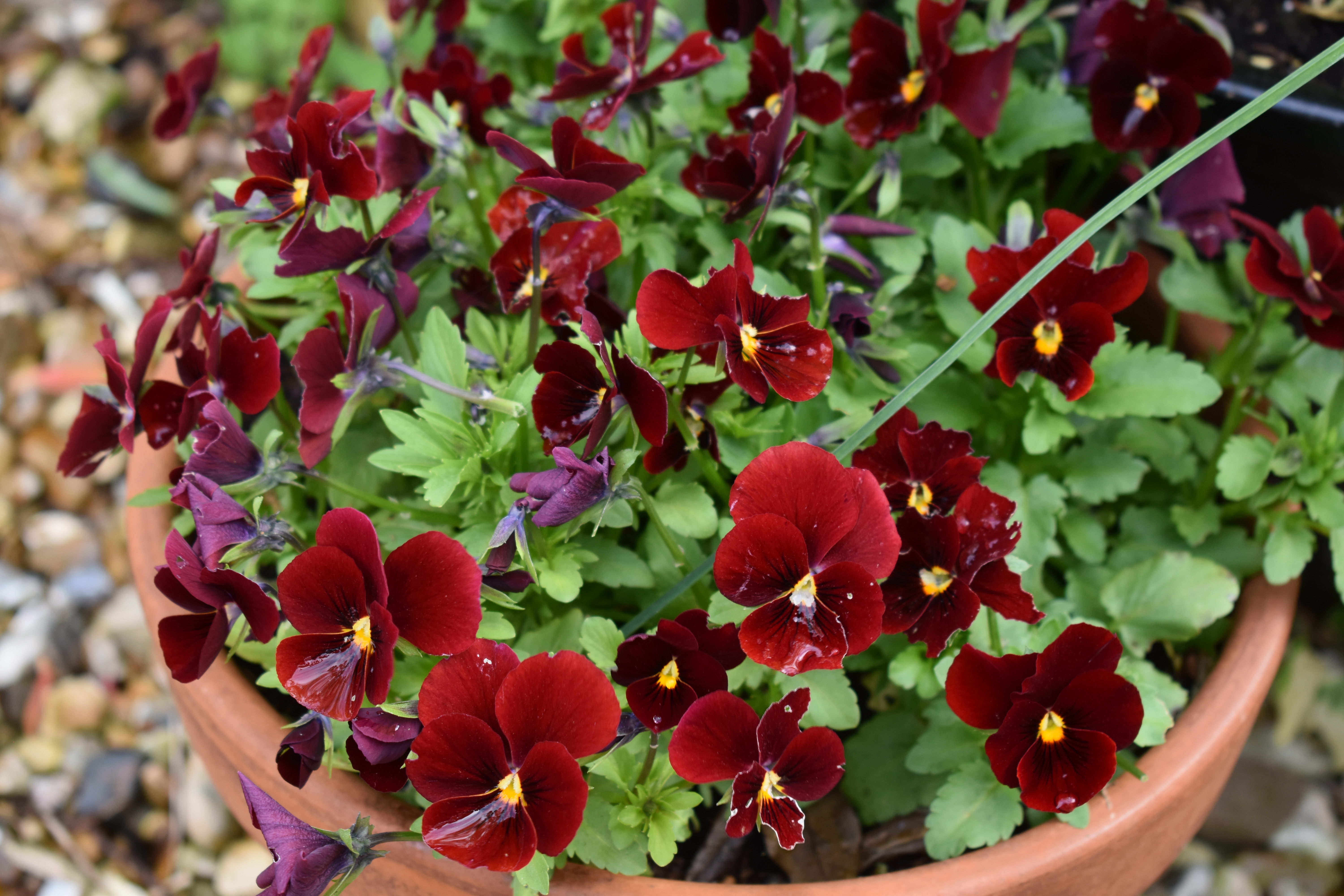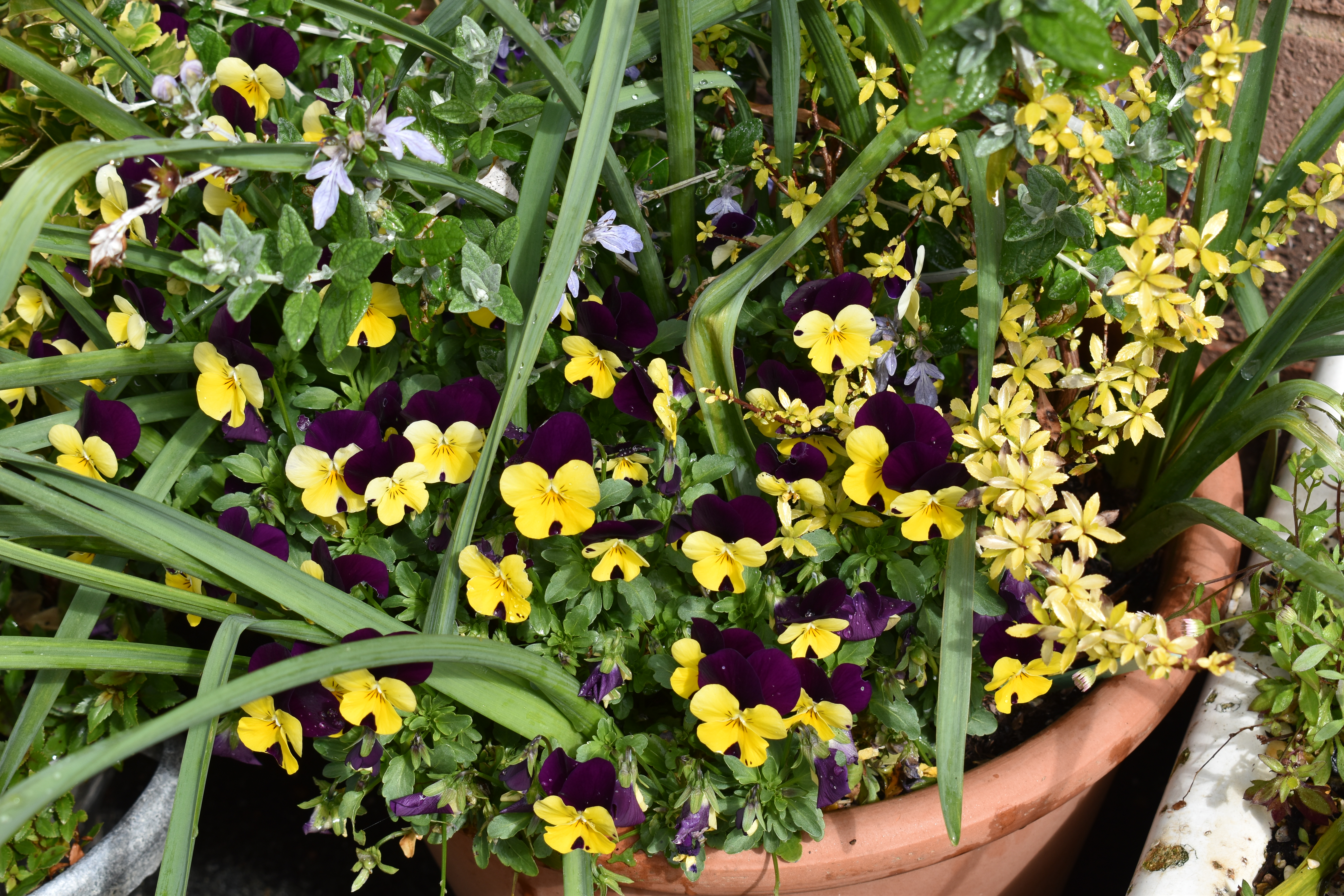 We have reached the final page for April where I wrote, “We always plant violas in our pots to accompany shrubs and perennials because they come in such a vast range of colours and they flower for several months. This winter they performed better than ever.”