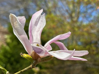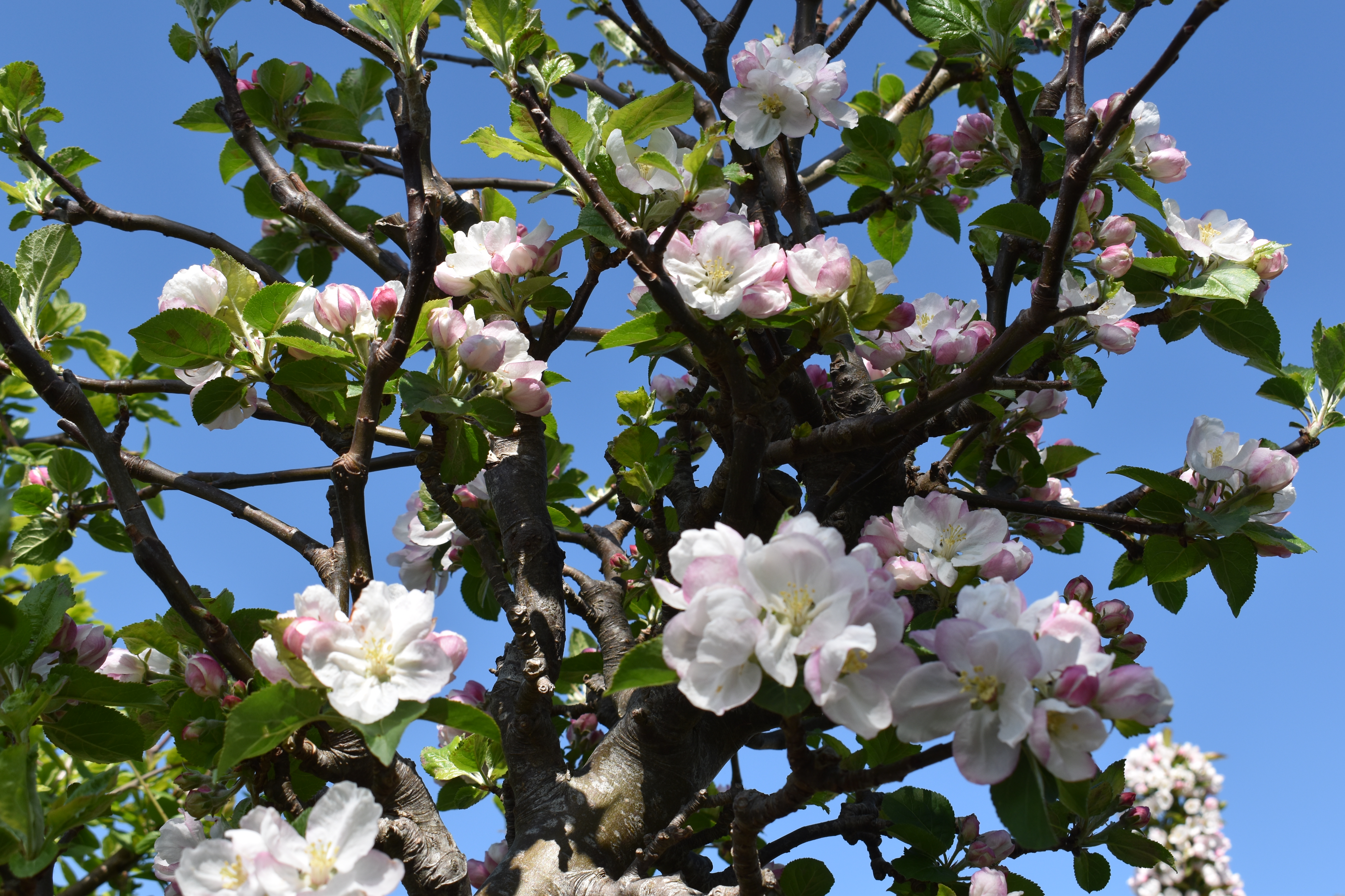 There are many spring flowering shrubs and small trees here which look extra special against a pure blue sky.