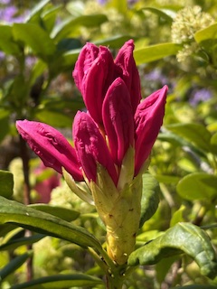We enjoyed our morning greatly as we found a garden of colour and surprises set around a beautiful red sandstone building. The colour was mostly from Rhododendrons and Azaleas, many of which were also richly scented. The entrance to the garden took us past a wonderful perfectly shaped Copper Beech in its reddish copper colouring. It made a wonderful picture with its neighbouring trees and shrubs.