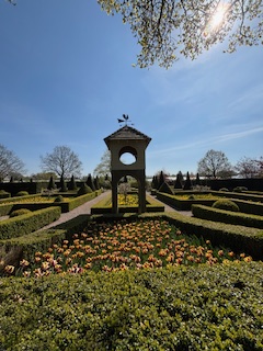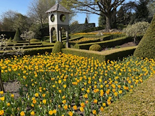 This garden is totally dominated by sheets of tulips between hedges of box, creating very dramatic pictures. This garden is on a gentle slope giving much better views of the tulip collections.