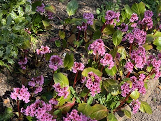 In contrast to tulips bergenias are never considered to be a feature of spring gardens but here at Bridgemere there were quite a few different ones flowering well now. I really like bergenias as ground cover or edging plants and we grow many in our own garden.
