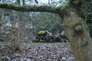 We walked alongside a long row of these chestnuts towards what looked like quite open woodland. This group of three golden trees was our next target. A haha showed us the way.