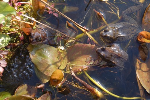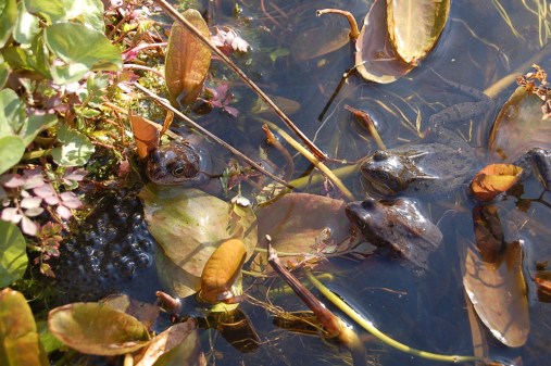 “Mid to late February is the time each year when our Common Frogs come to sing, mate and then leave balls of spawn in our wildlife pond. Thus early this month Jude donned her chest waders and cleaned up the pond. She removed Duckweed, Blanket Weed and fallen leaves, then thinned out the water plants.