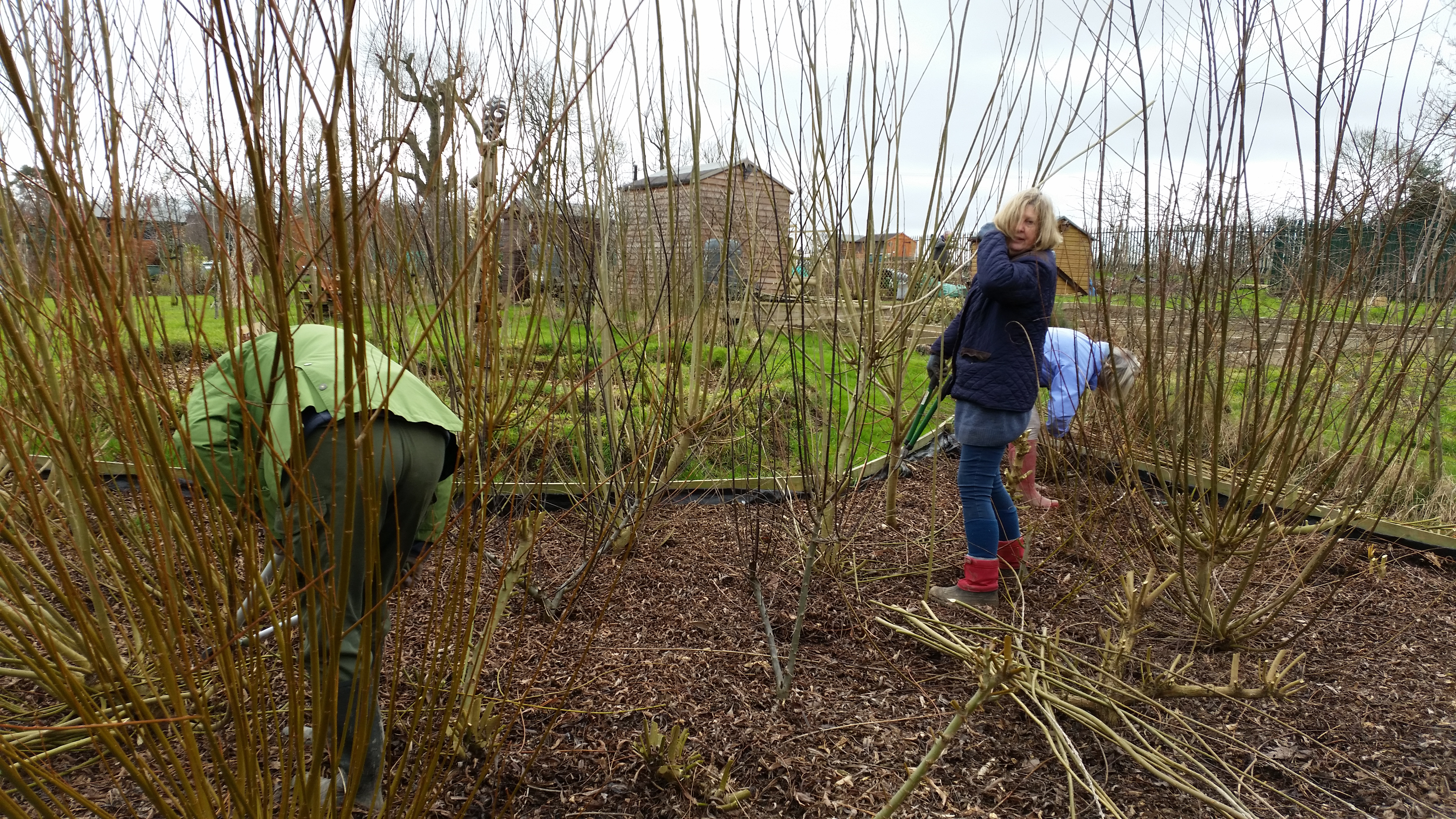 The final pictures illustrate just how much wood is removed and shows the colours of the branches. All this material will be used for making plant supports and will be useful when we make a willow dome for some friends’ garden in a week or so (look out for a post about this). This is a fine example of recycling in action in the garden.