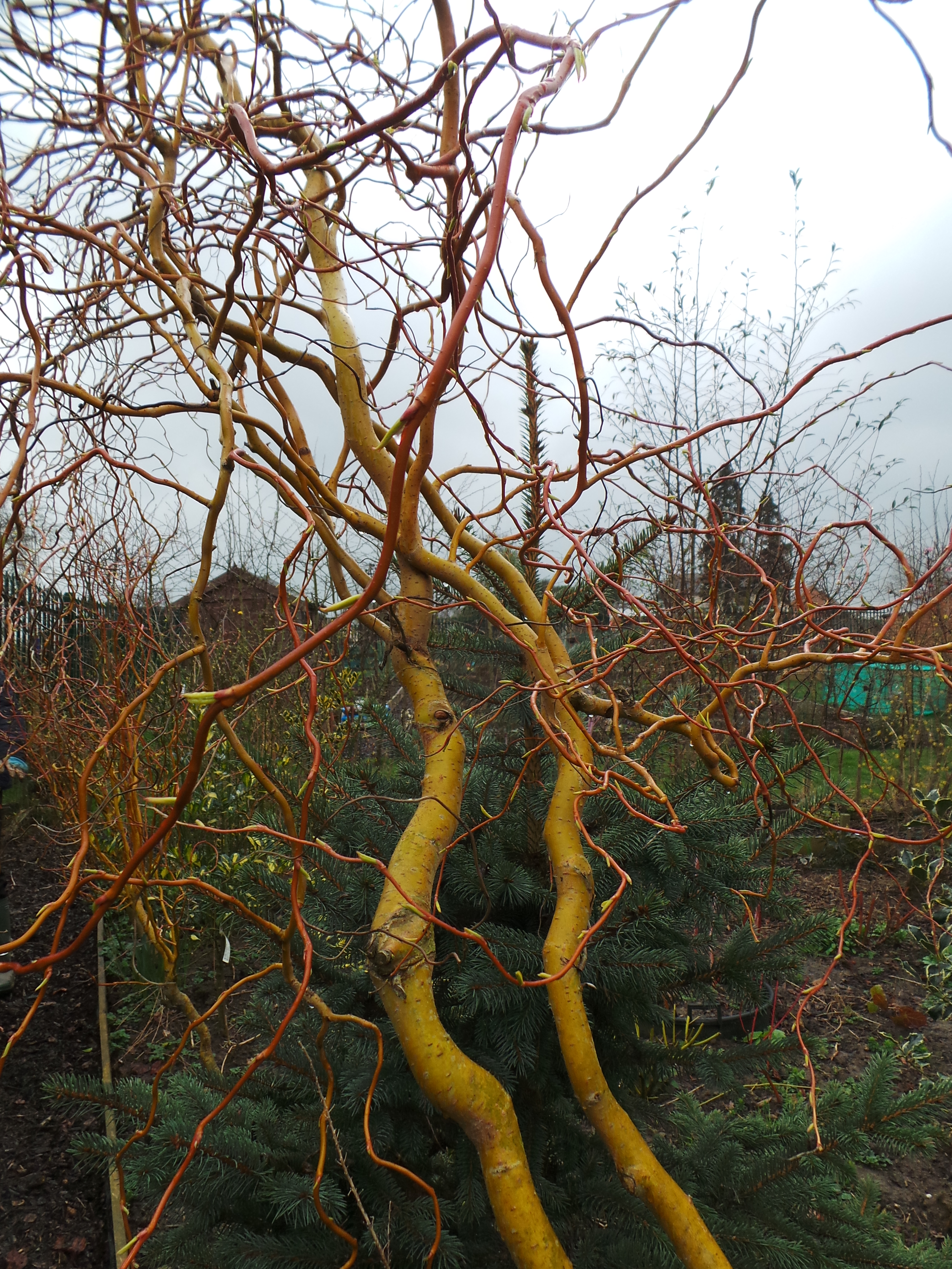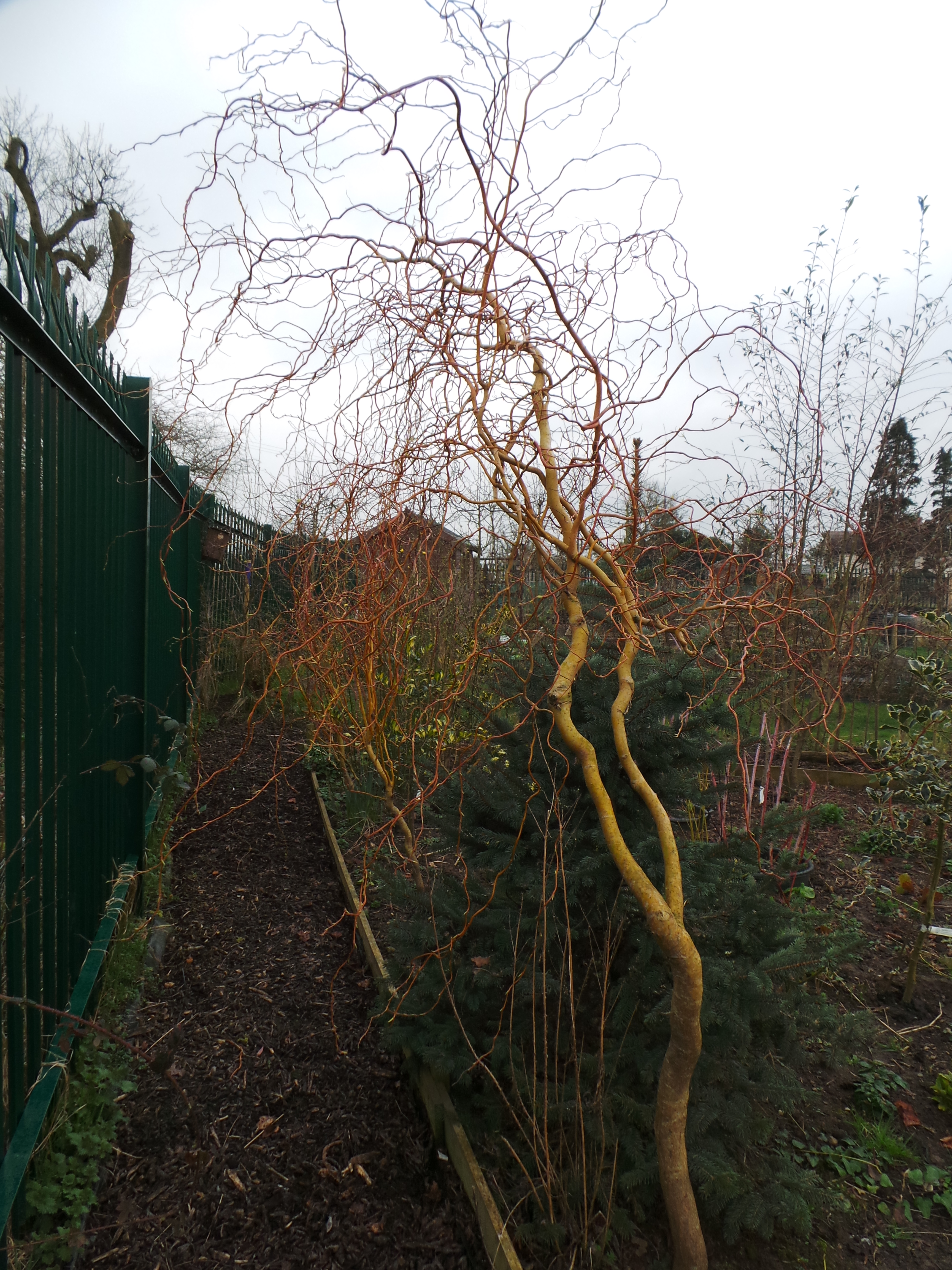 I love Salix (willows) – they are one of my favourite trees almost on a par with Betulas (Birches). I always have liked them, our own native species and the garden varieties we can grow. We have several at home in our garden and use them on our allotment communal gardens where we have a Withy Bed with 17 different varieties with different coloured stems and leaves. From these we have made a Fedge, which is a living hedge and a Willow Dome and Willow Tunnel for the children.